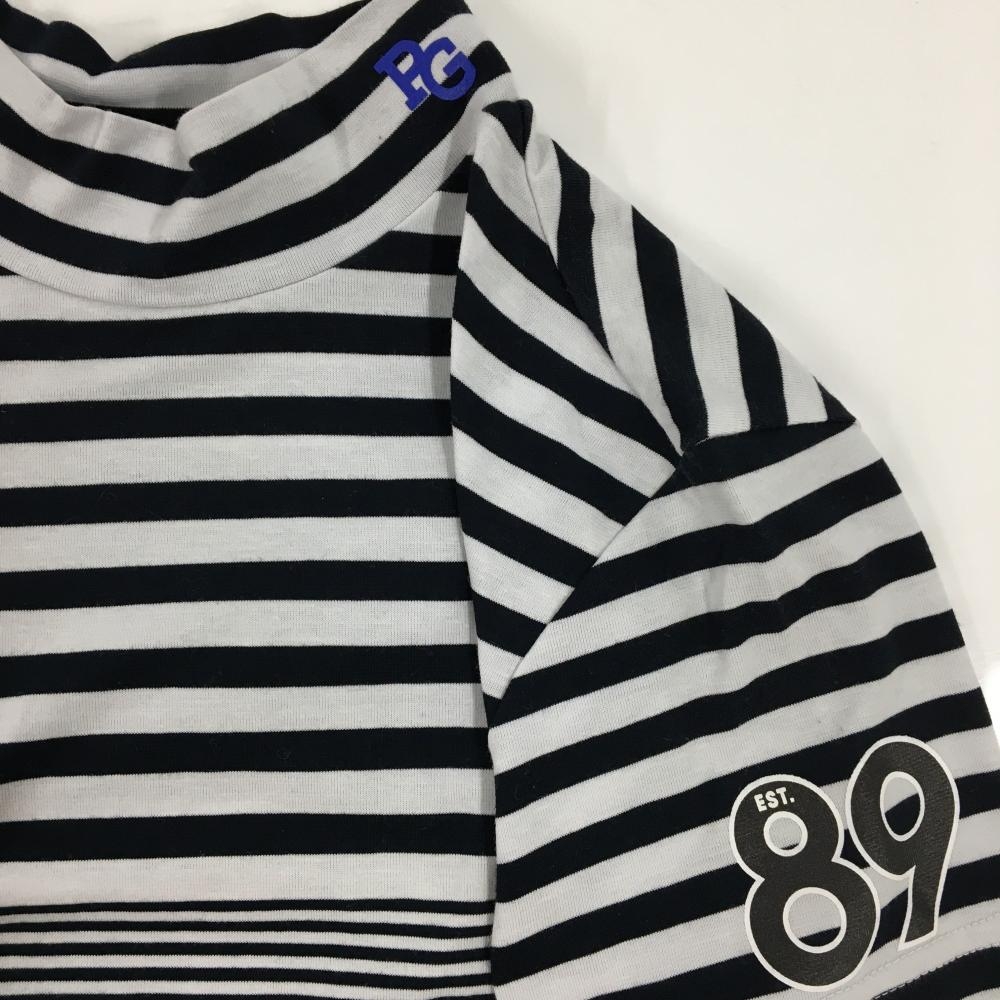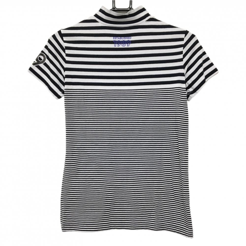【超美品】パーリーゲイツ 半袖ハイネックシャツ 白×ダークネイビー ボーダー コットン混 レディース 0(S) ゴルフウェア PEARLY GATES
