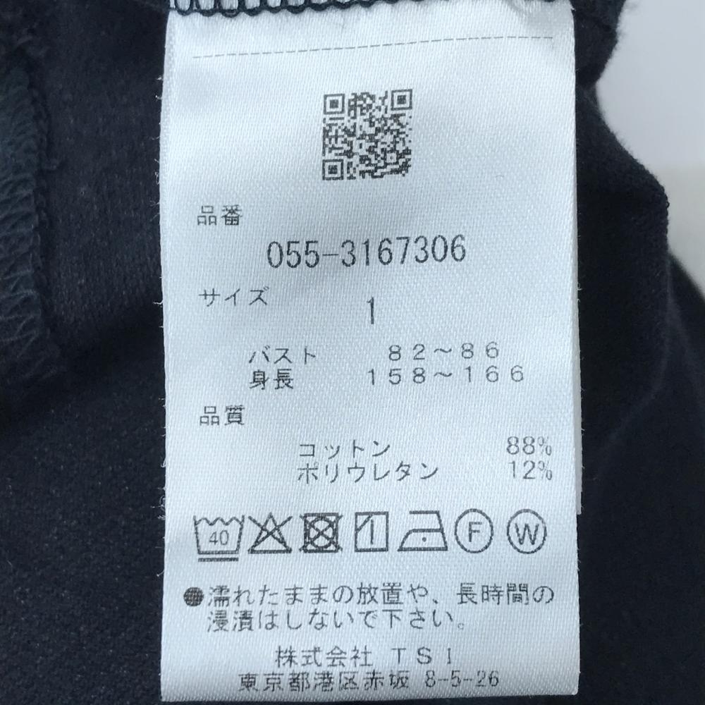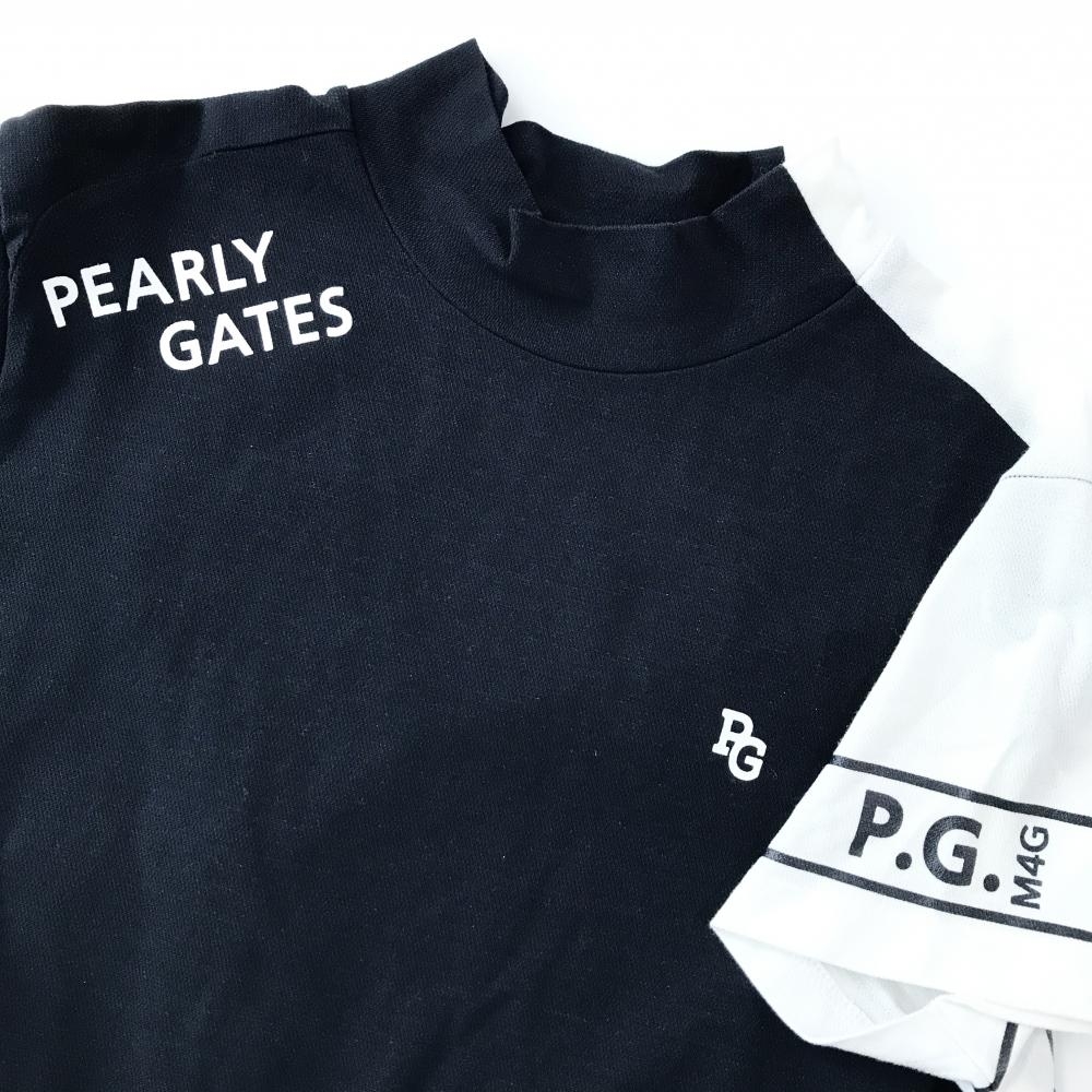 【超美品】パーリーゲイツ 半袖ハイネックシャツ ダークネイビー×白 コットン混 肩ロゴ レディース 1(M) ゴルフウェア PEARLY GATES