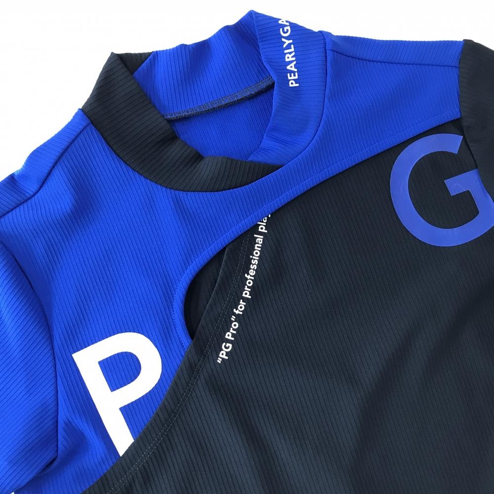 【美品】パーリーゲイツ 半袖ハイネックシャツ 黒×ブルー バイカラー レディース 0(S) ゴルフウェア 2024年モデル PEARLY GATES