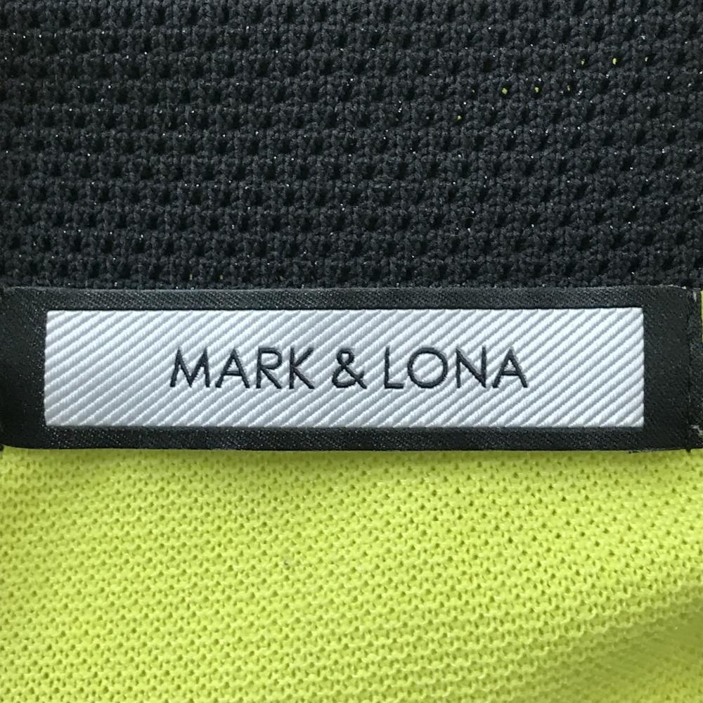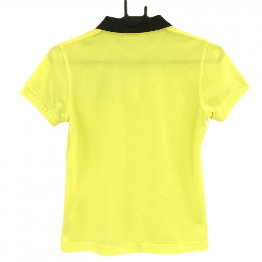 【美品】マークアンドロナ 半袖ポロシャツ イエロー×黒 襟・袖口メッシュ&ラメ ダメージ加工 レディース 36(S) ゴルフウェア MARK&LONA