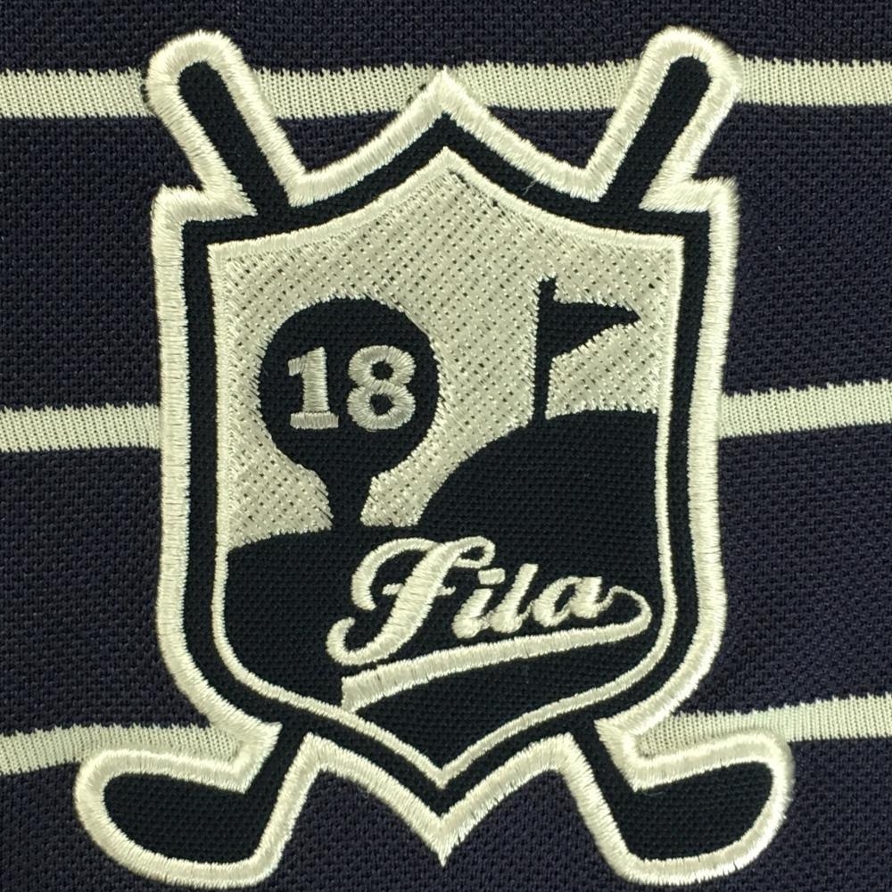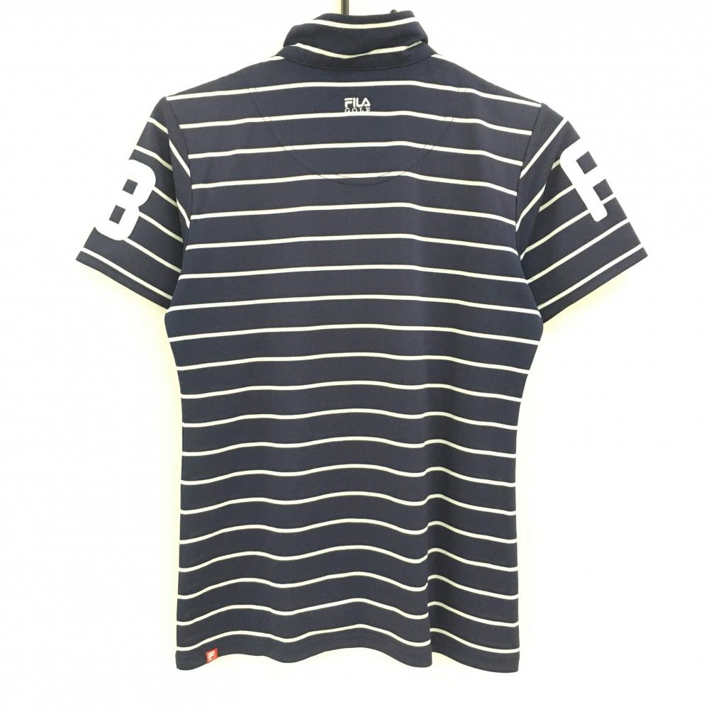 フィラゴルフ 半袖ハイネックシャツ ネイビー×白 ボーダー ハーフジップ レディース L ゴルフウェア FILA GOLF