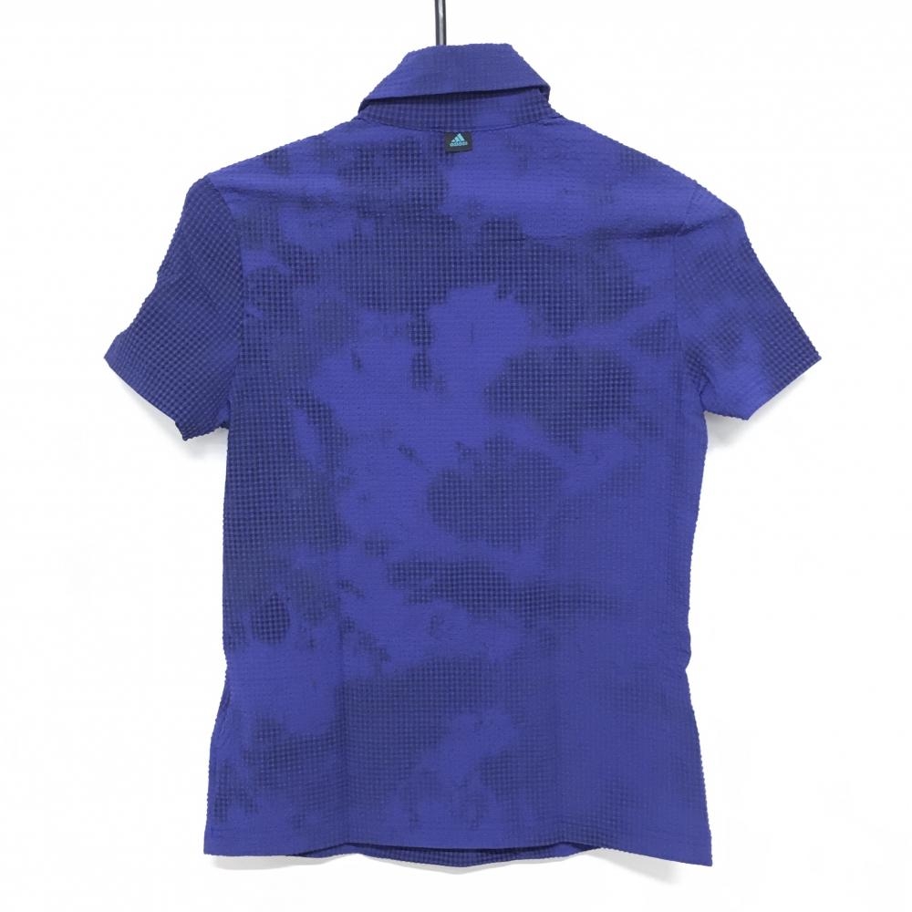 【美品】アディダス 半袖ポロシャツ ネイビー 凹凸生地 ショールカラー レディース S ゴルフウェア adidas