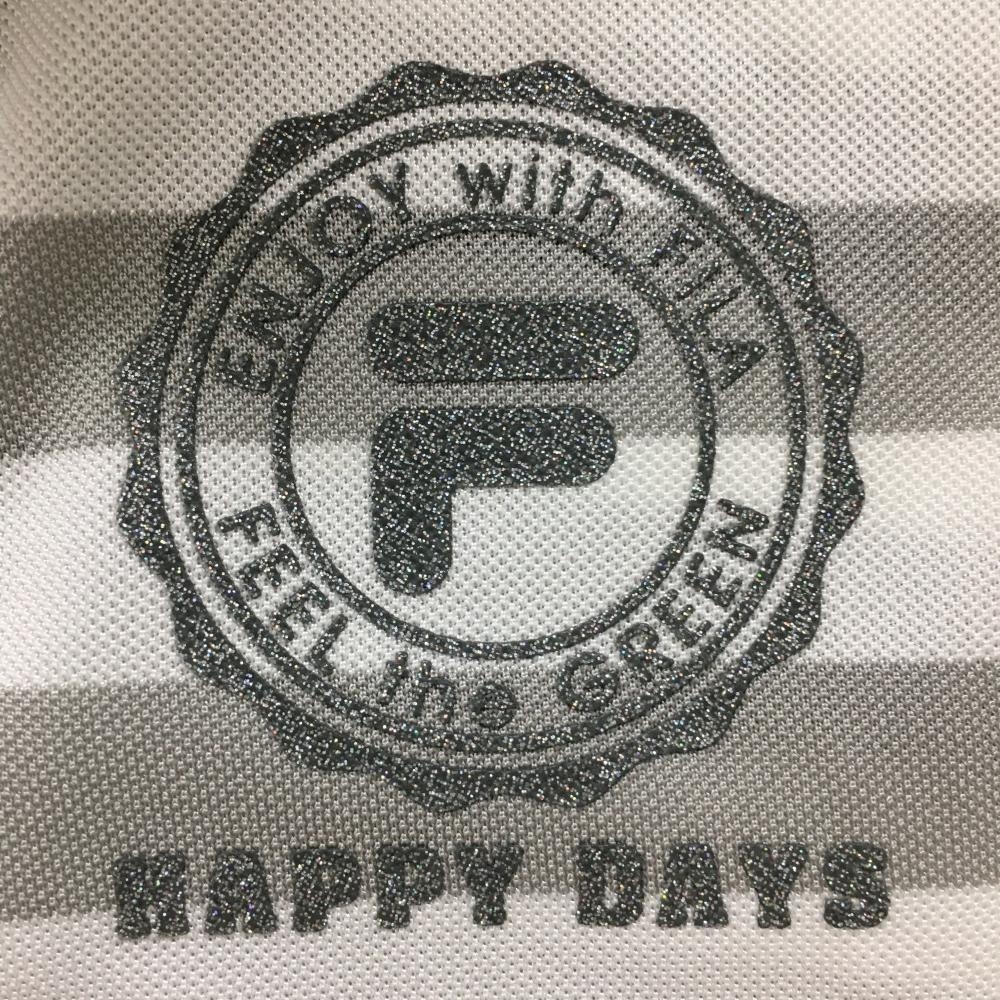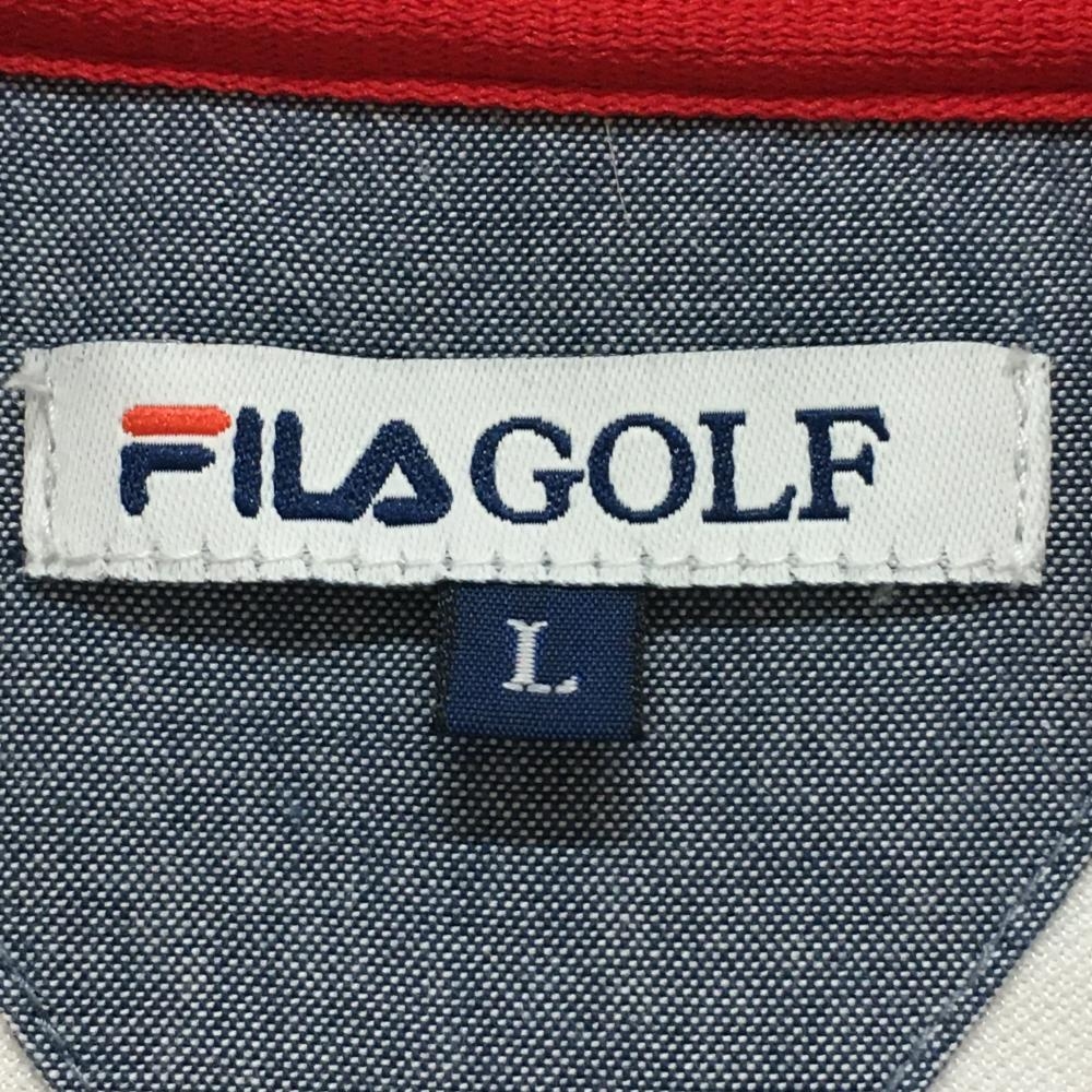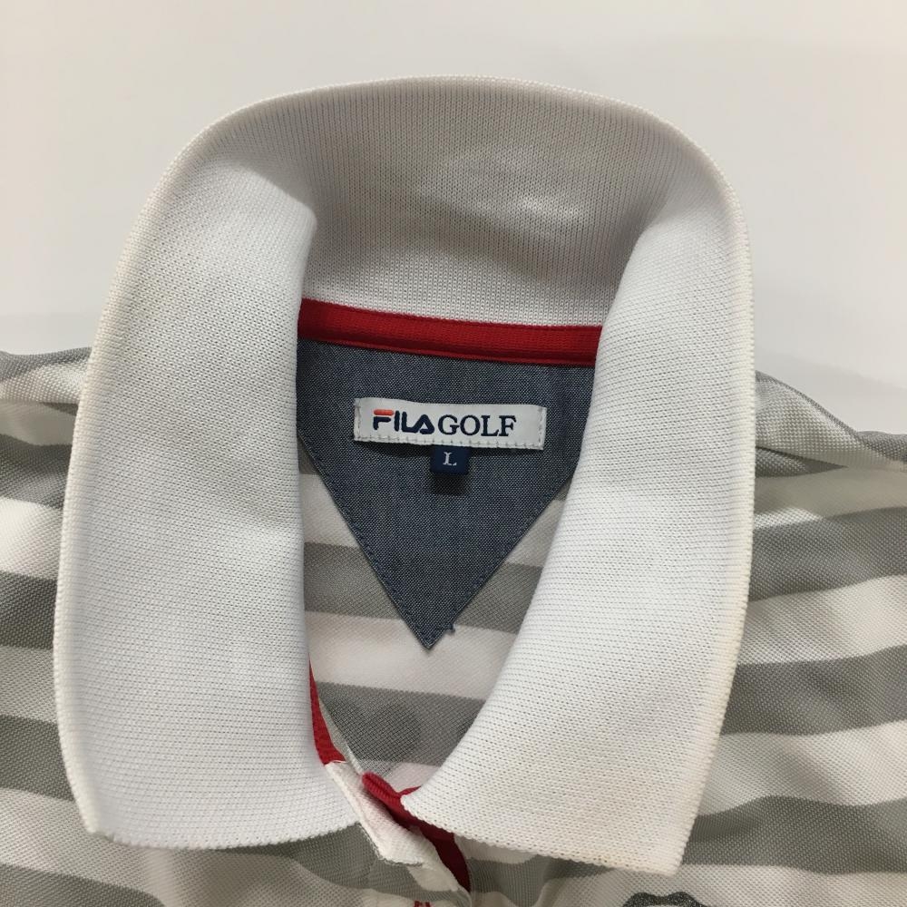 【美品】フィラゴルフ 半袖ポロシャツ 白×グレー ボーダー レディース L ゴルフウェア FILA GOLF