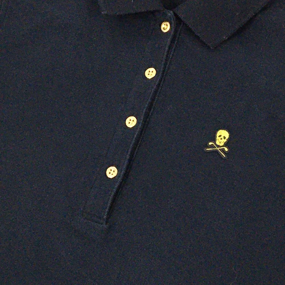 マークアンドロナ 半袖ポロシャツ 黒 スカル 襟裏ロゴ レディース M ゴルフウェア MARK&LONA