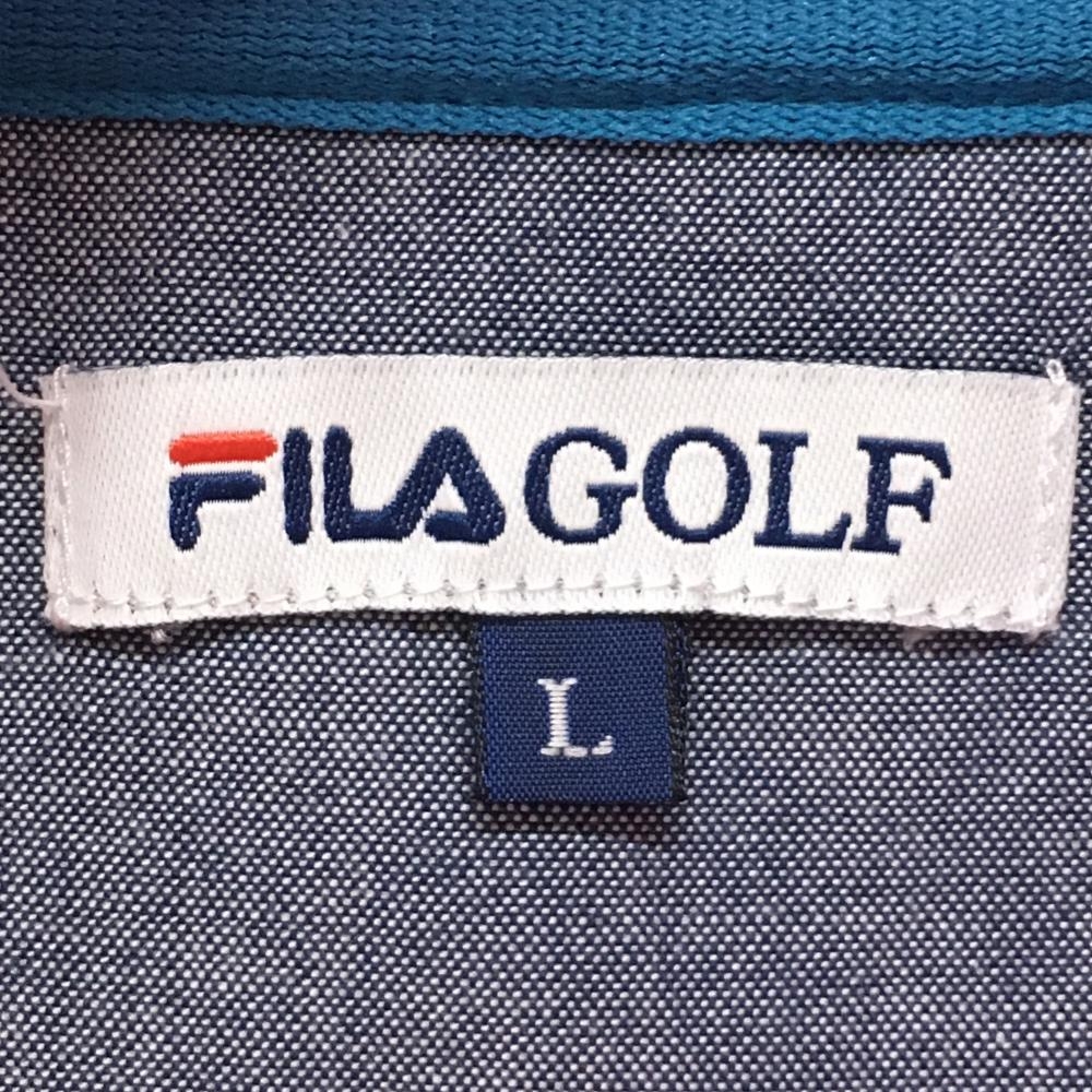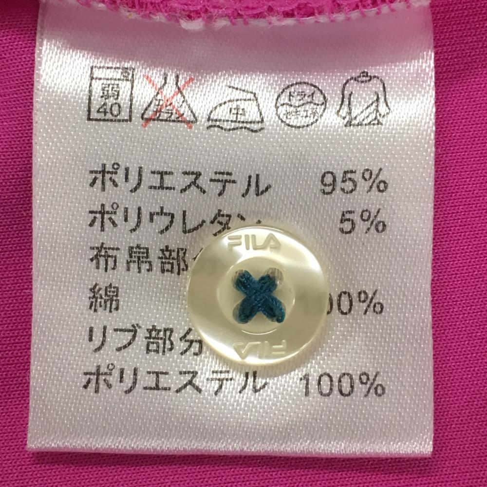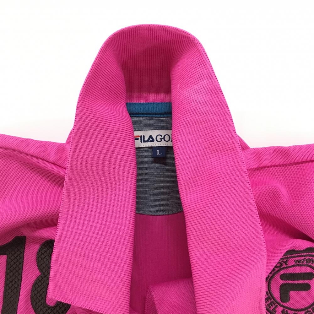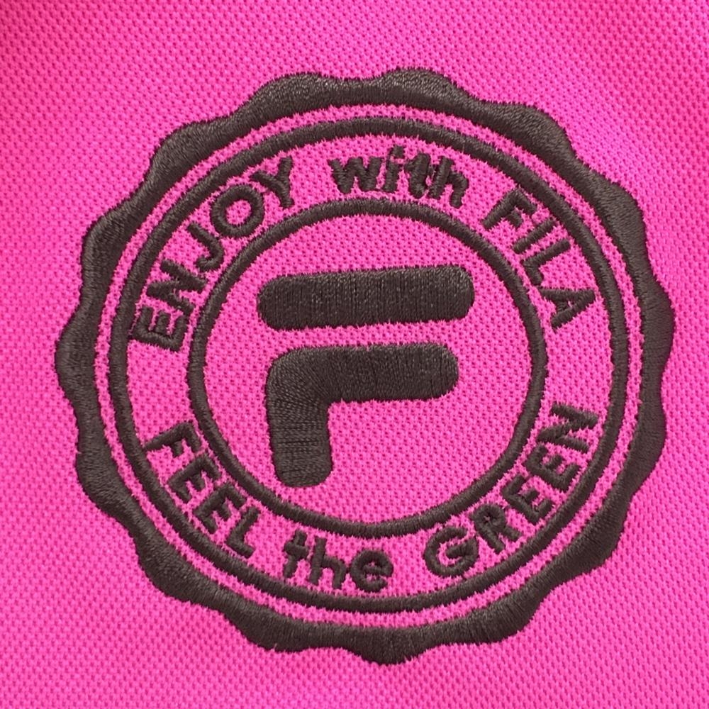 【美品】フィラゴルフ 半袖ポロシャツ ピンク×ダークグレー ロゴ刺しゅう レディース L ゴルフウェア FILA GOLF