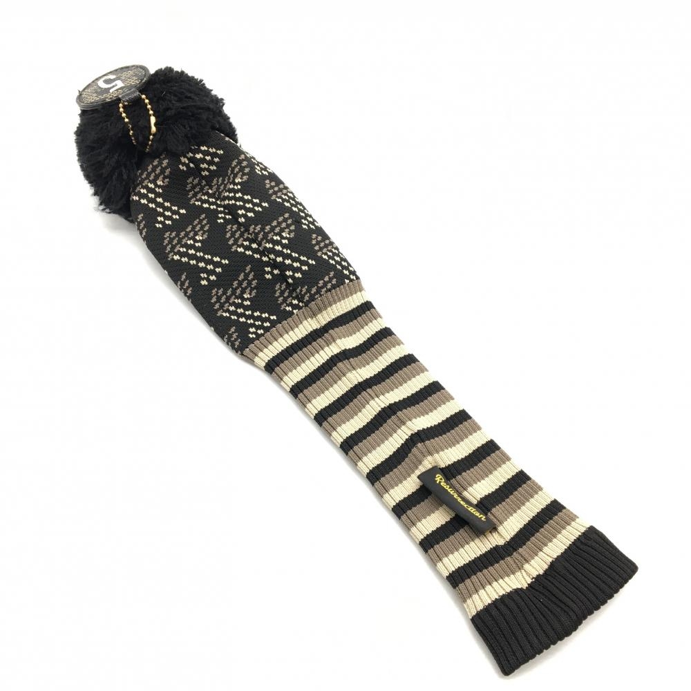 【美品】レザレクション ヘッドカバー(FW) 黒×グレー ニット ボンボン付 フェアウェイウッド ゴルフ Resurrection