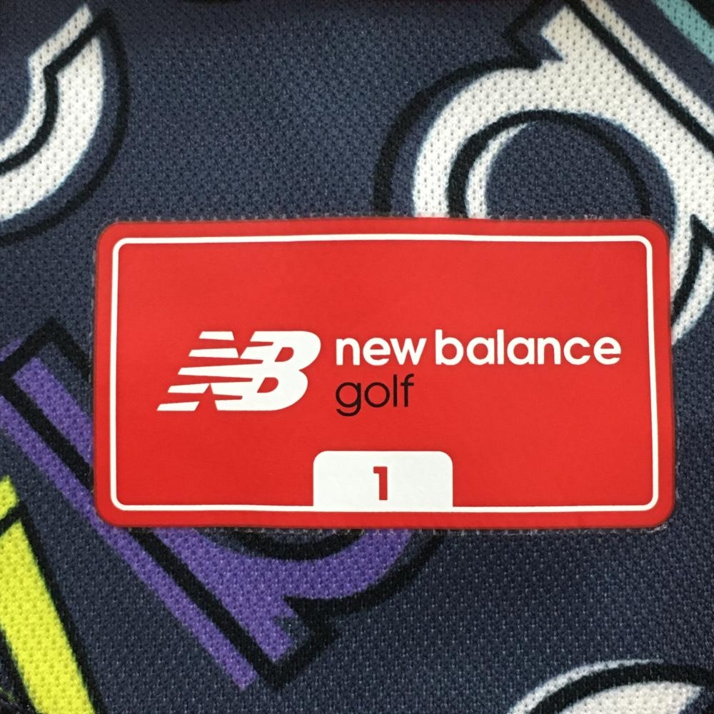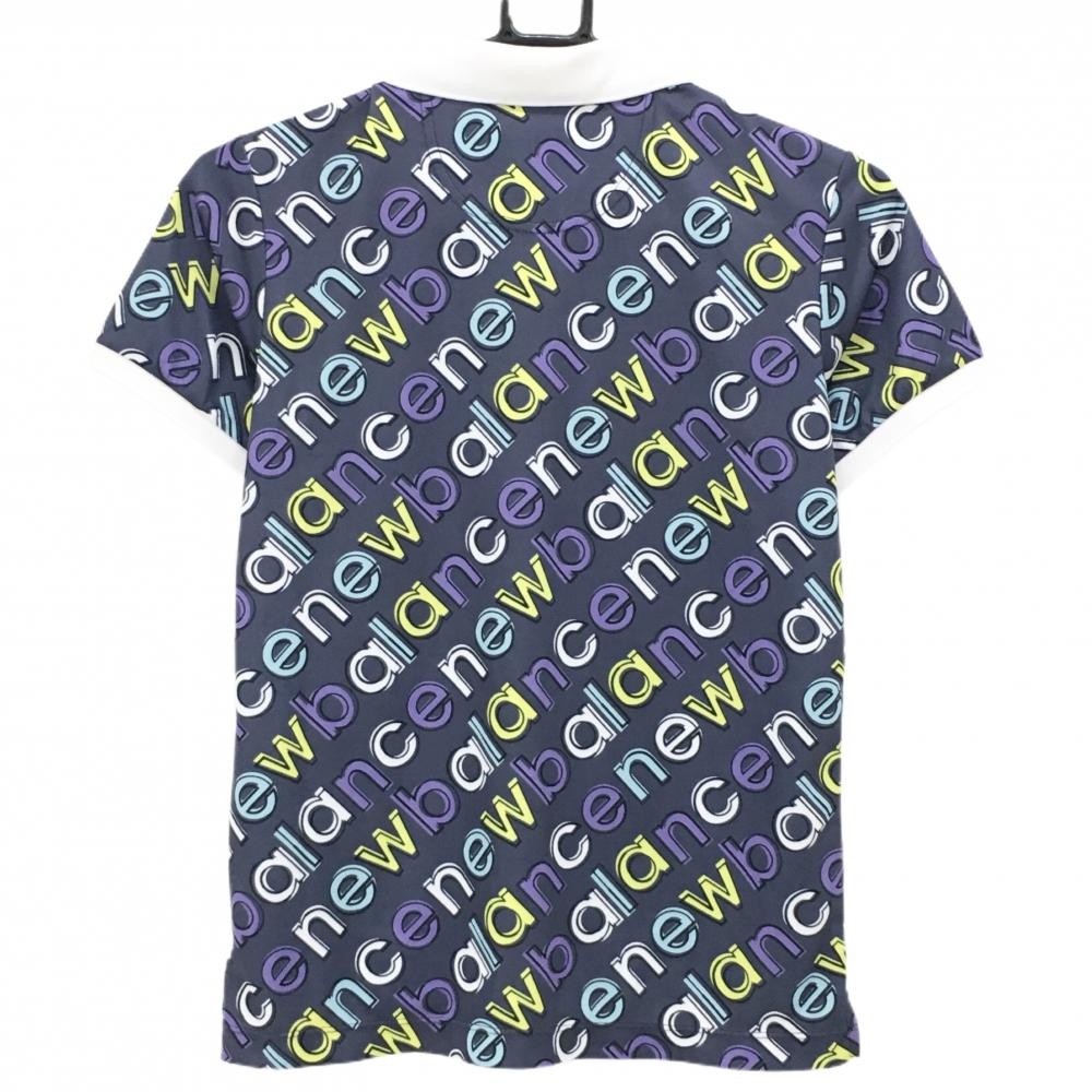 ニューバランスゴルフ 半袖ポロシャツ ネイビー計×ライトブルー×イエロー 英字ロゴ総柄 レディース 1(M) ゴルフウェア New Balance