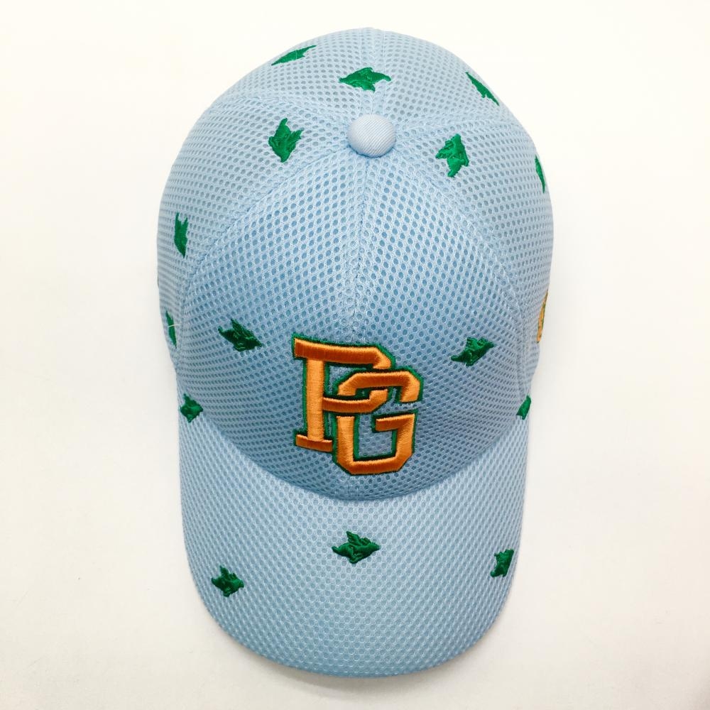 パーリーゲイツ メッシュキャップ ライトブルー×オレンジ×グリーン 総柄 ロゴ刺しゅう FR ゴルフウェア PEARLY GATES