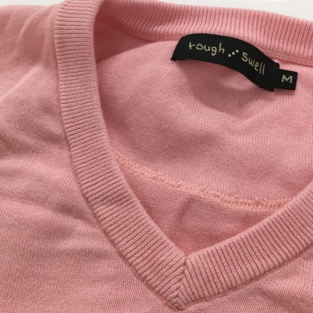 ラフアンドスウェル セーター ピンク×白 袖ラインコットン100% ニット メンズ M ゴルフウェア rough&swell