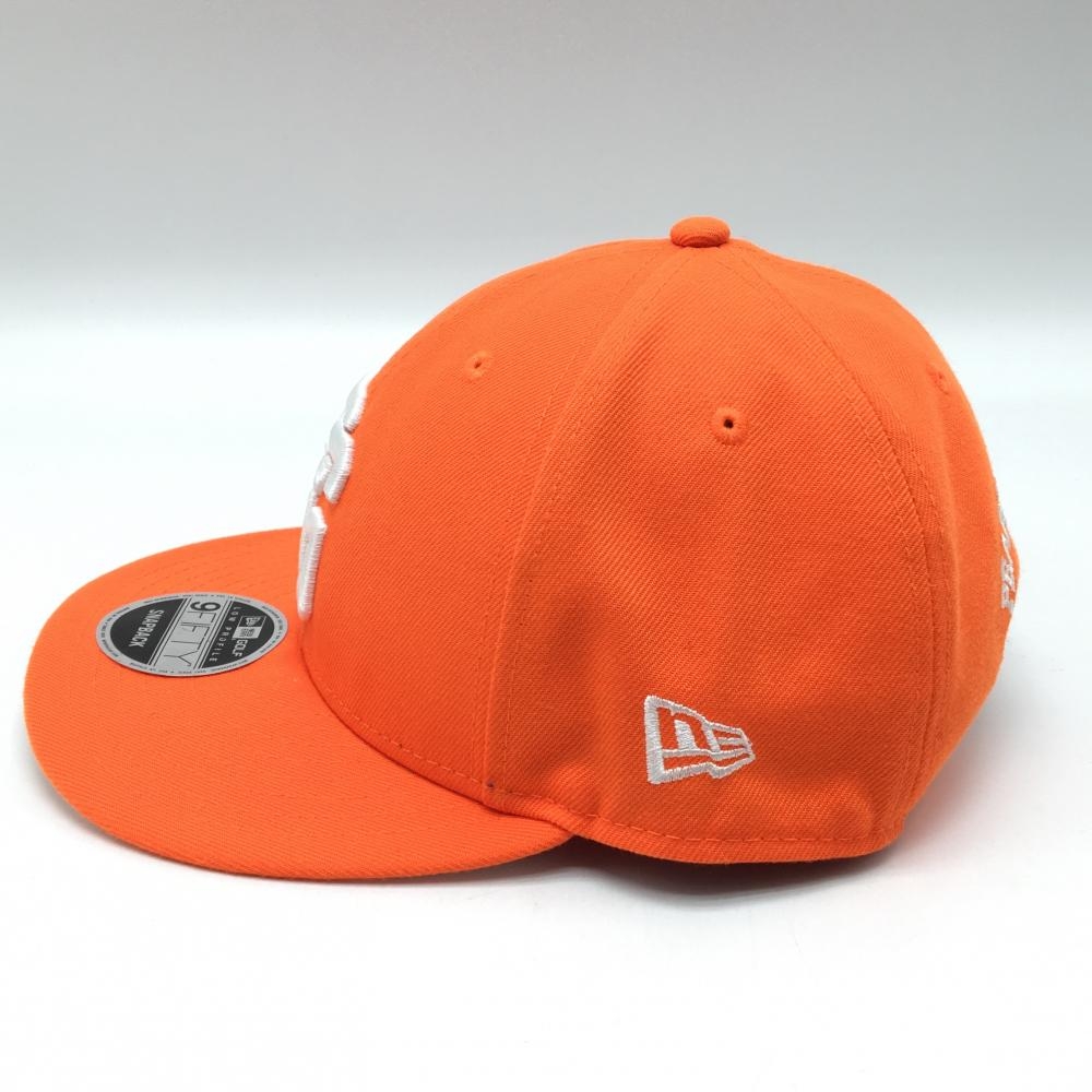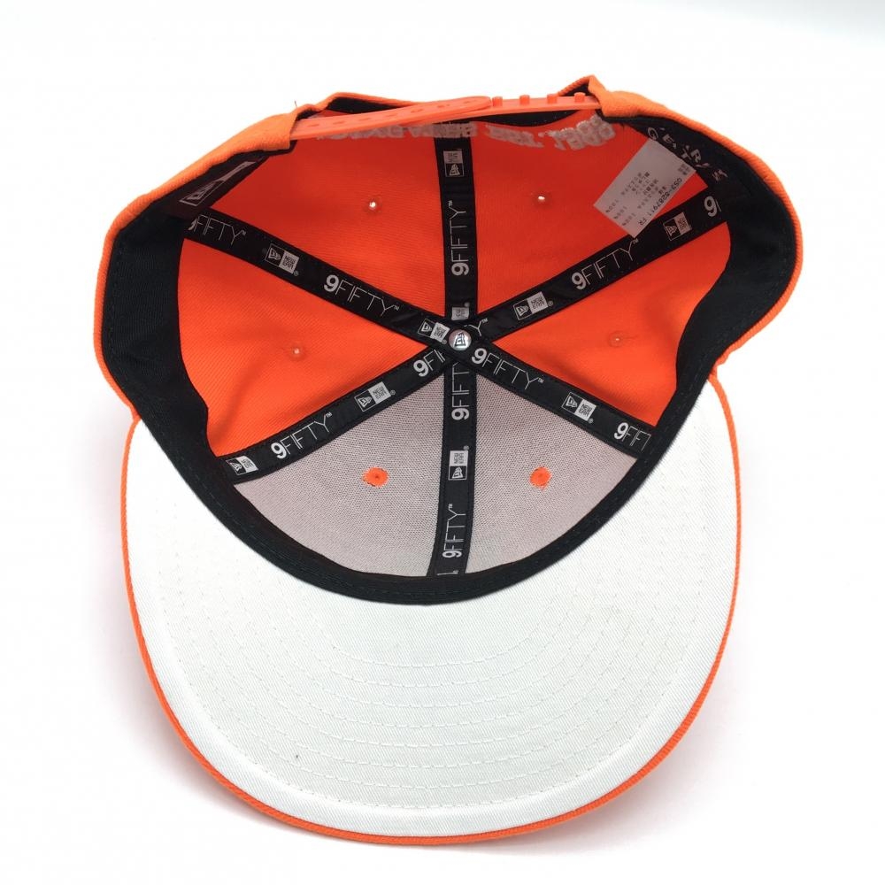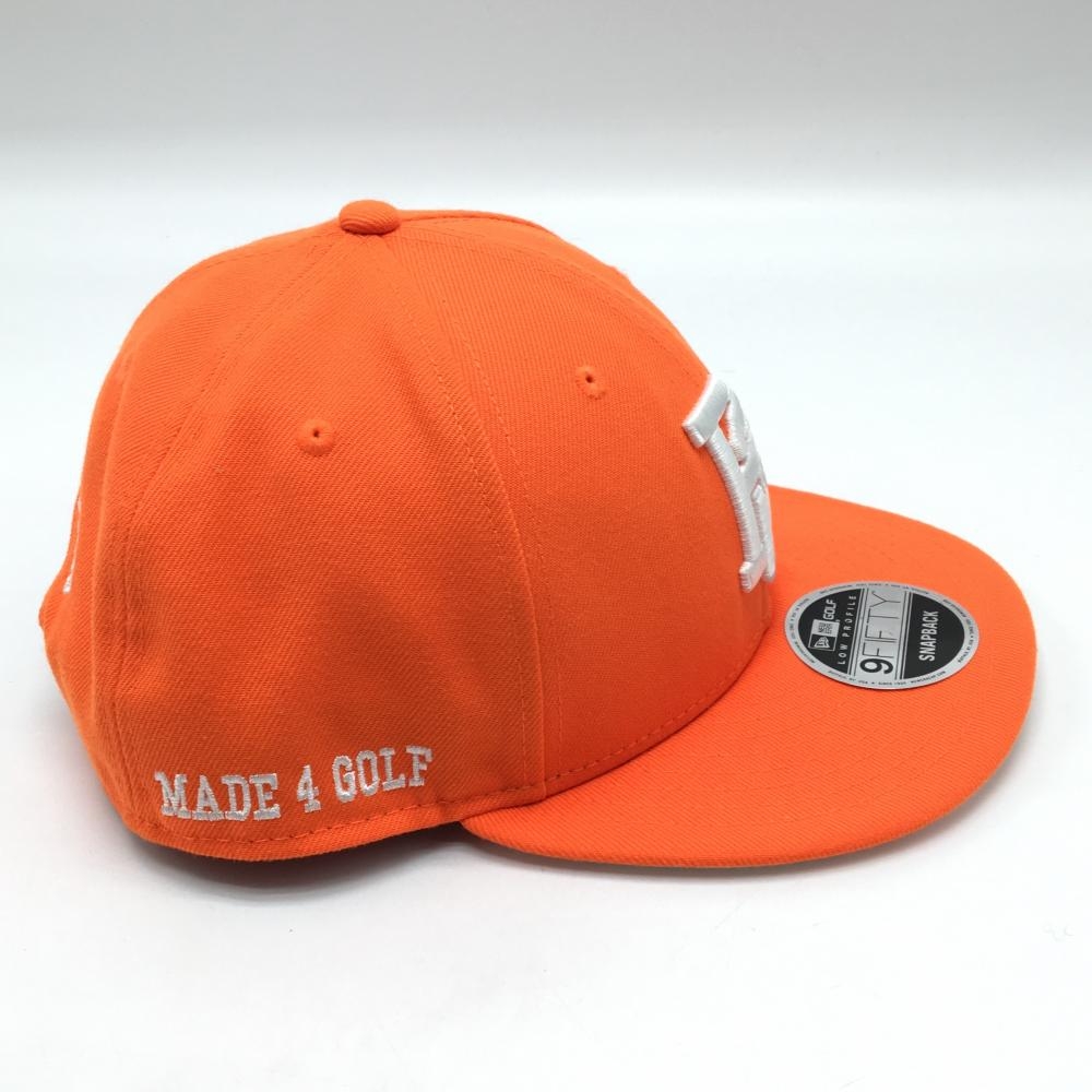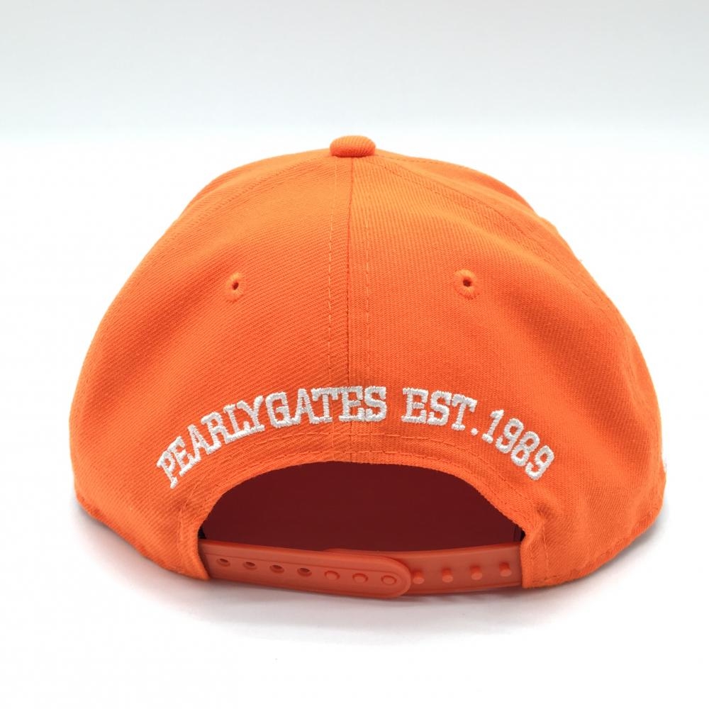 【超美品】パーリーゲイツ×ニューエラ フラットキャップ オレンジ×白 ロゴ刺しゅう FR ゴルフウェア PEARLY GATES