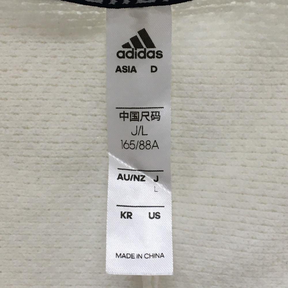 【美品】アディダス ニットジャケット 白 胸元ロゴ ナイロン100% レディース L ゴルフウェア adidas