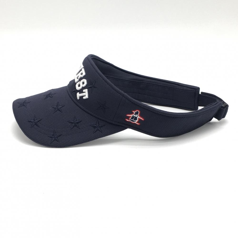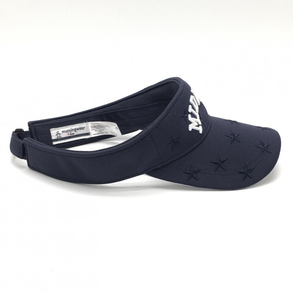 【超美品】マンシングウェア サンバイザー ネイビー 星総柄 立体ロゴ F(56-60cm) ゴルフウェア Munsingwear