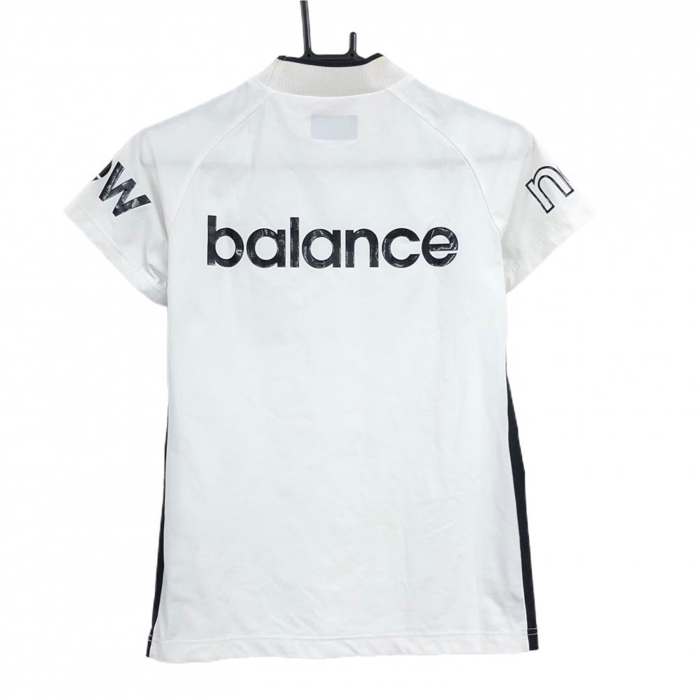 ニューバランスゴルフ 半袖ハイネックシャツ 白×黒 フロントロゴ サイドライン ネックメッシュ レディース 1(M) ゴルフウェア New Balance