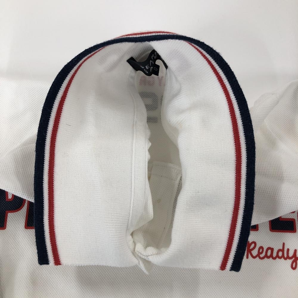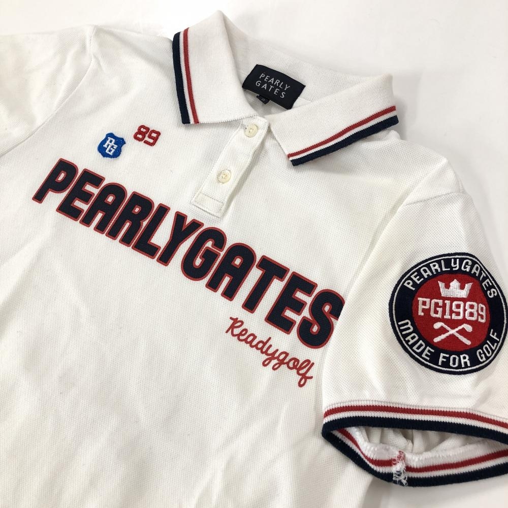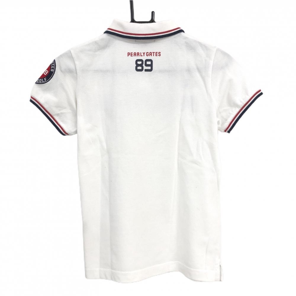 パーリーゲイツ 半袖ポロシャツ 白×ダークネイビー×レッド フロントロゴプリント レディース 0(S) ゴルフウェア PEARLY GATES