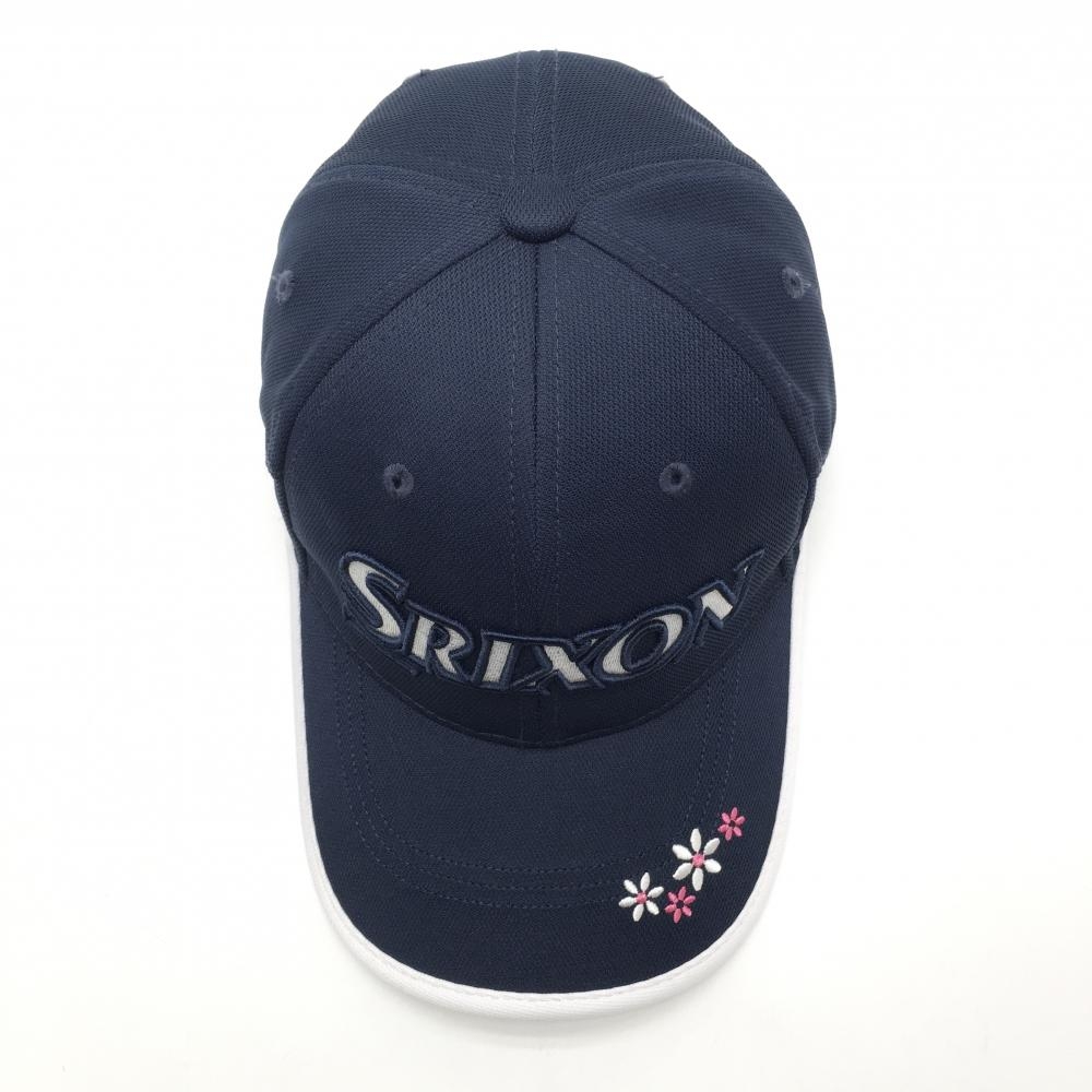 【美品】スリクソン キャップ ネイビー×白 立体ロゴ つば花刺しゅう レディース フリーサイズ(54-58cm) ゴルフウェア SRIXON