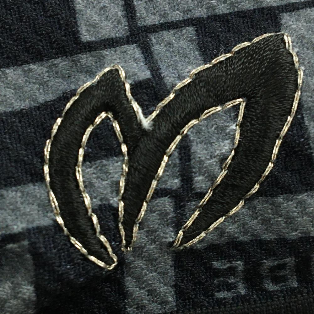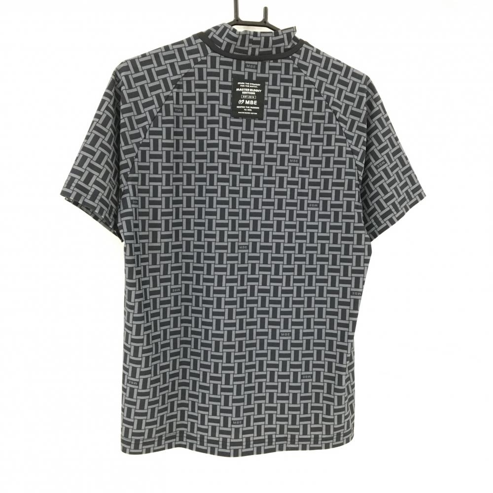 【超美品】マスターバニー 半袖ハイネックシャツ ネイビー×グレー 総柄 ストレッチ メンズ 5(L) ゴルフウェア MASTER BUNNY EDITION