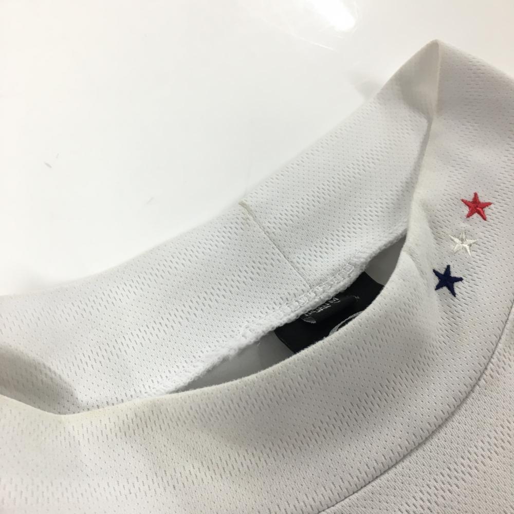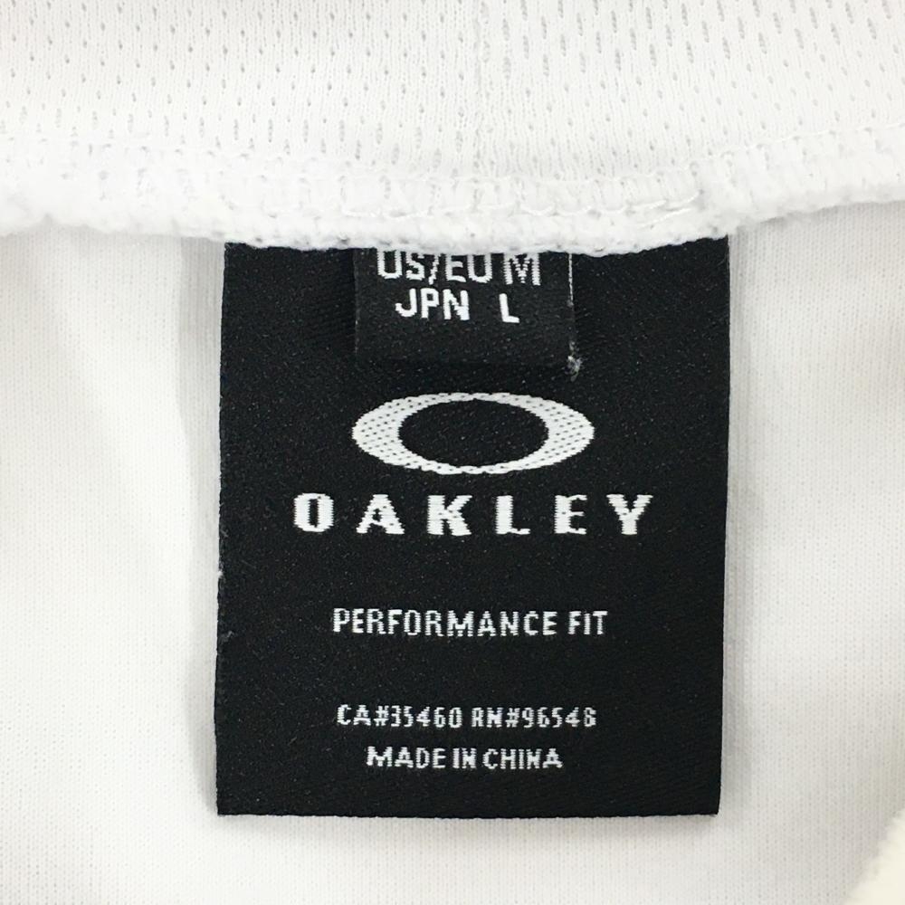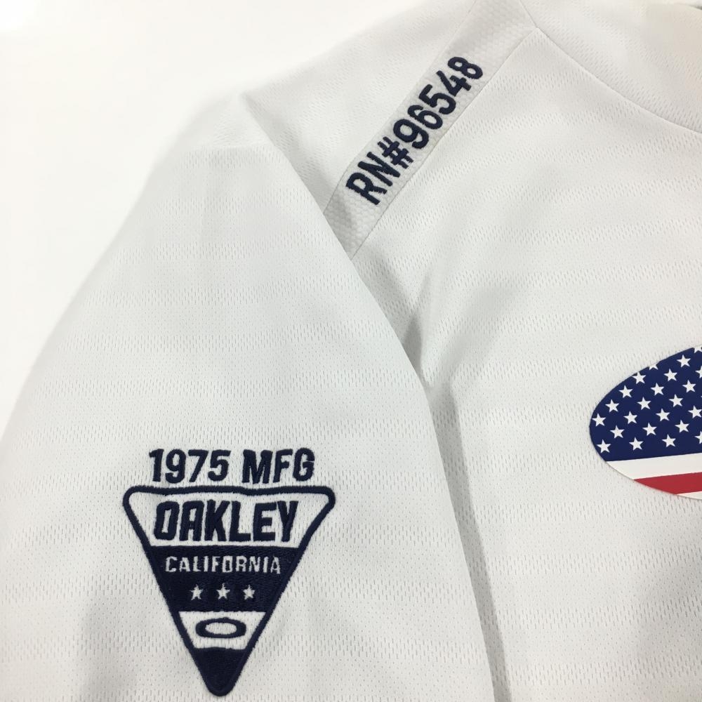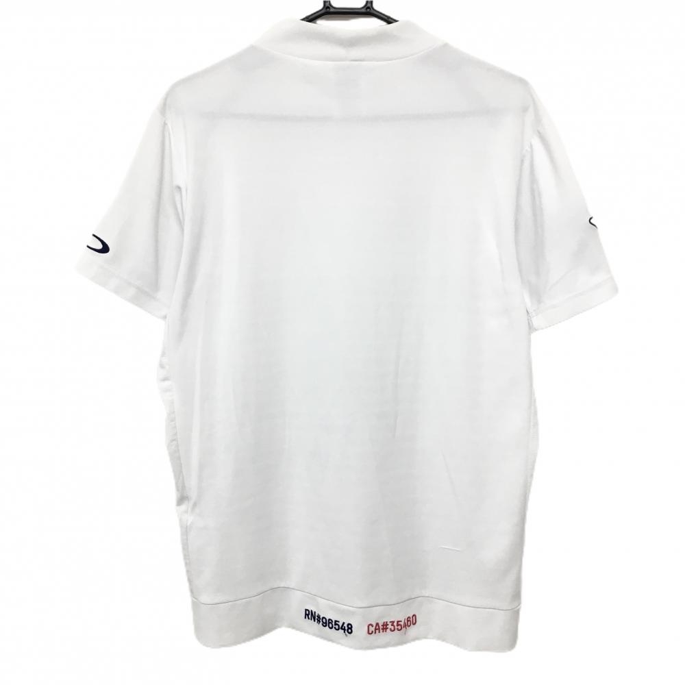 オークリー 半袖ハイネックシャツ 白 地模様 ロゴ星条旗柄 メンズ L ゴルフウェア Oakley