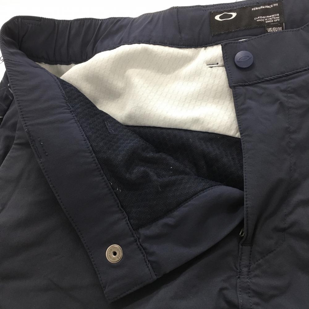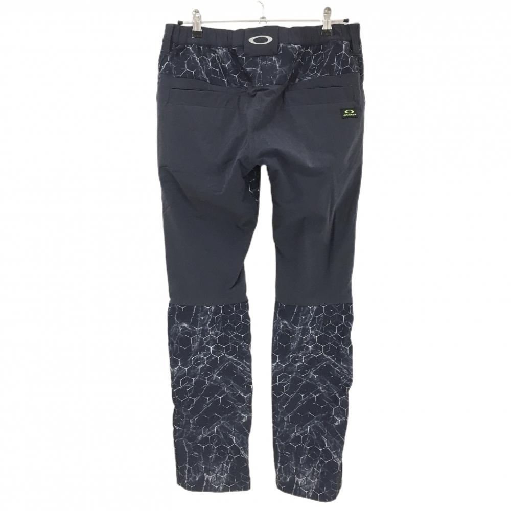 【美品】オークリー ナイロンパンツ ネイビー×白 一部柄 裏地付 後ろウエストゴム メンズ L ゴルフウェア Oakley