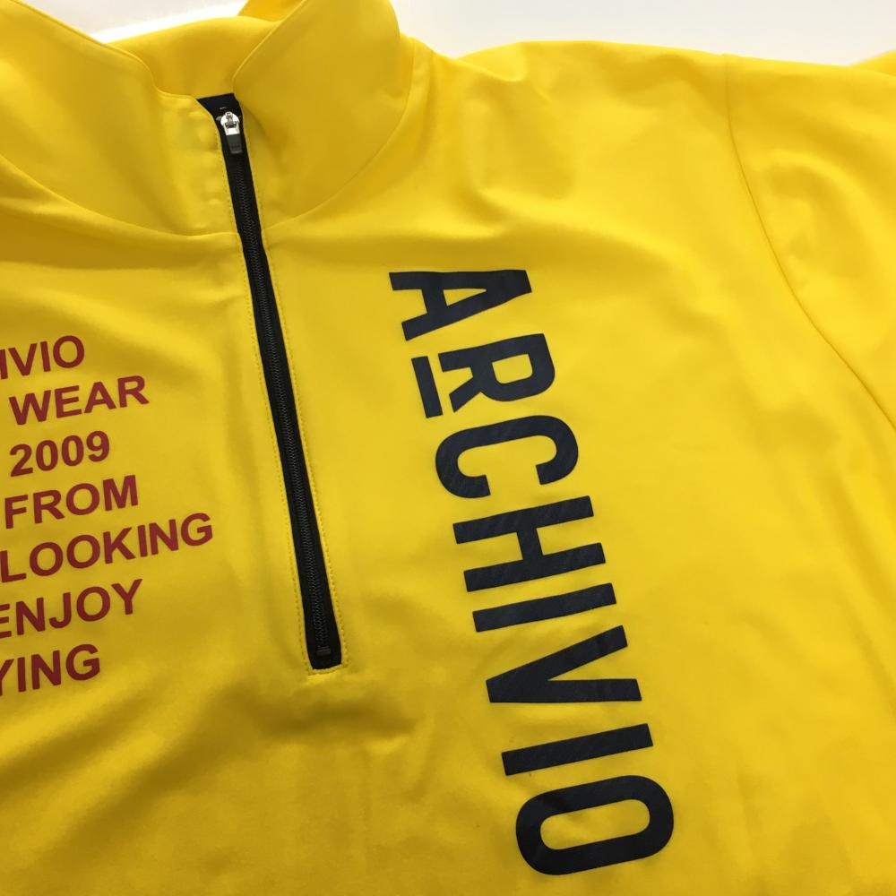 【美品】アルチビオ 半袖ハイネックシャツ イエロー×黒 ハーフジップ ストレッチ メンズ 48 ゴルフウェア archivio