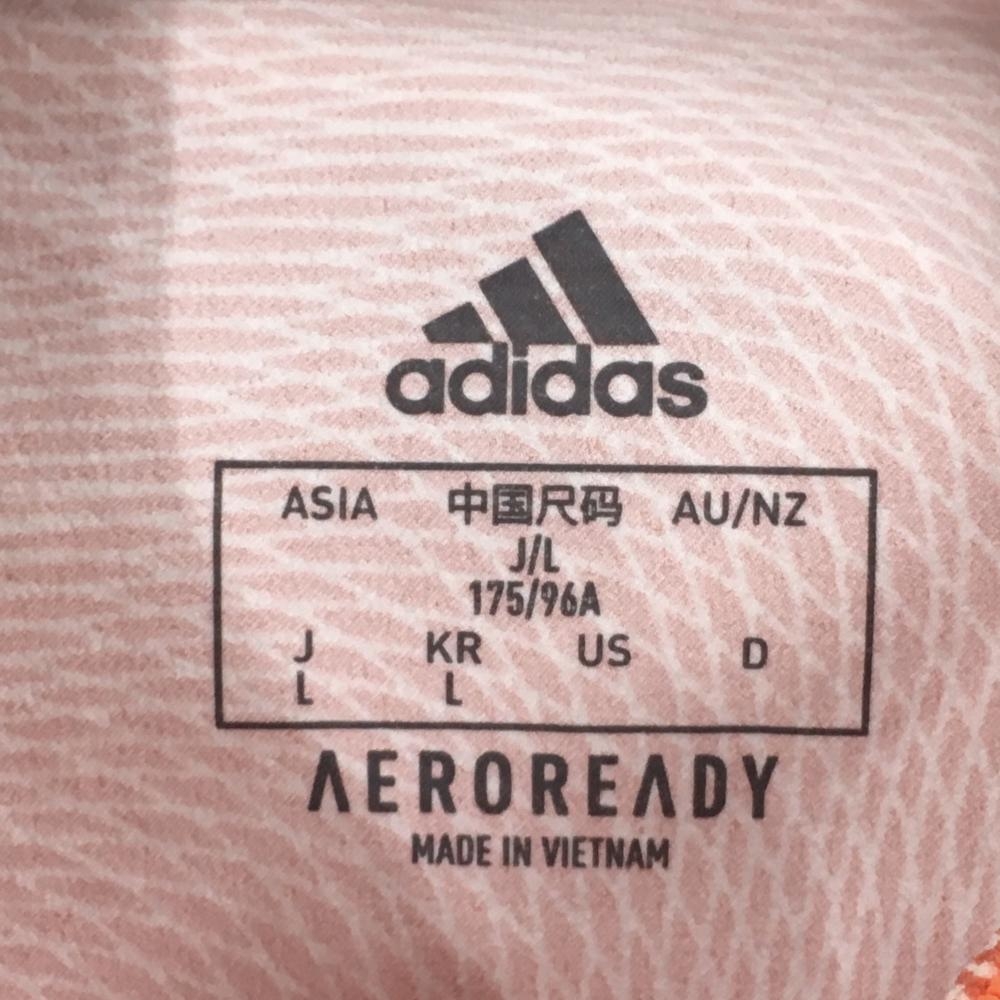 【超美品】アディダス 半袖ポロシャツ オレンジ×白 総柄 ナイロン混 メンズ L ゴルフウェア adidas