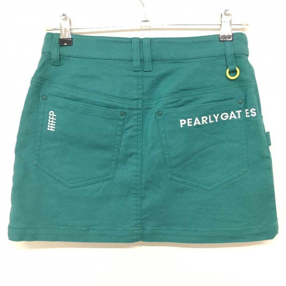【美品】パーリーゲイツ スカート グリーン系×イエロー ロゴ刺しゅう ストレッチ レディース 0(S) ゴルフウェア PEARLY GATES