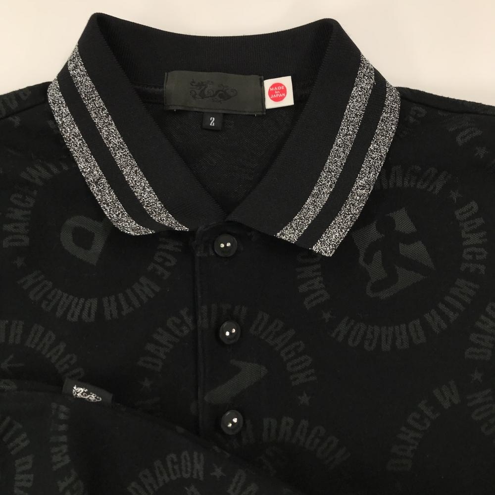 【美品】ダンスウィズドラゴン 半袖ポロシャツ 黒×グレー 総柄 レディース 2(M) ゴルフウェア Dance With Dragon