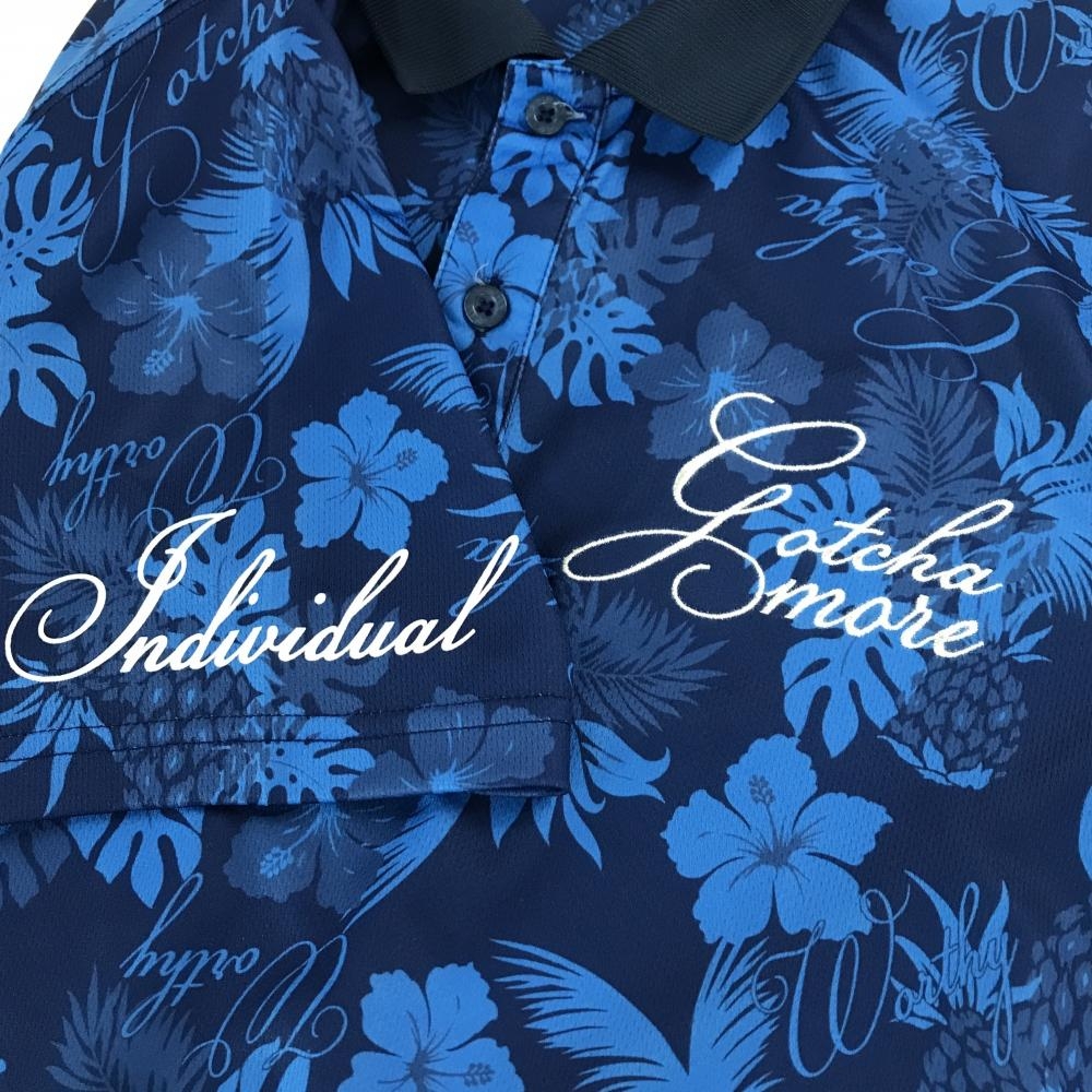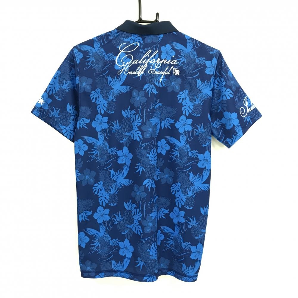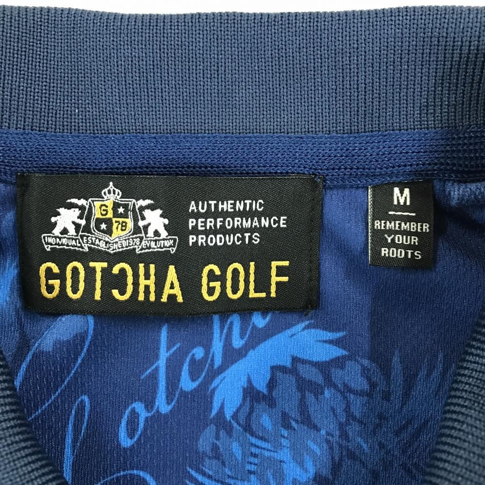 【超美品】ガッチャゴルフ 半袖ポロシャツ ネイビー 総柄 ハイビスカス メンズ M ゴルフウェア GOTCHA GOLF