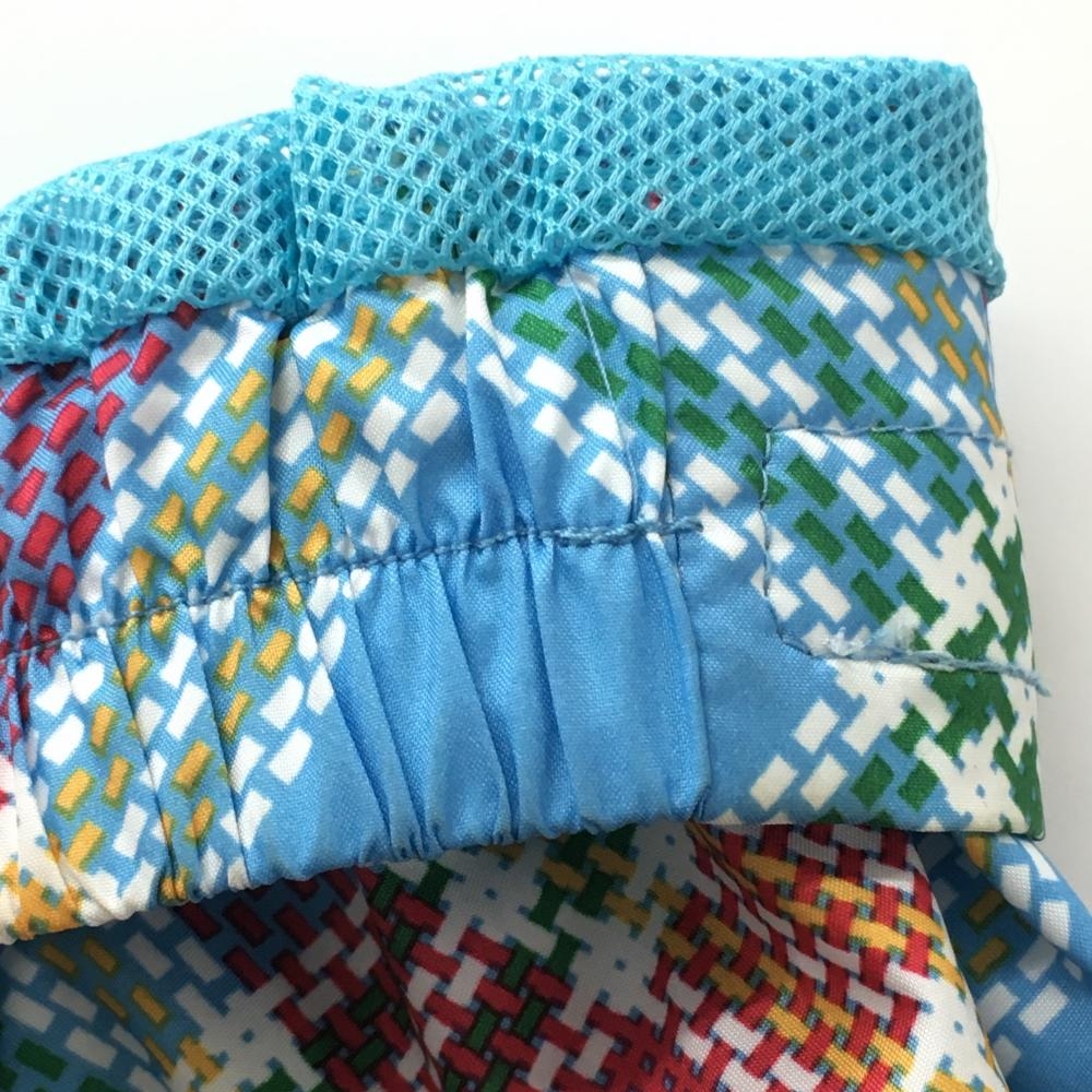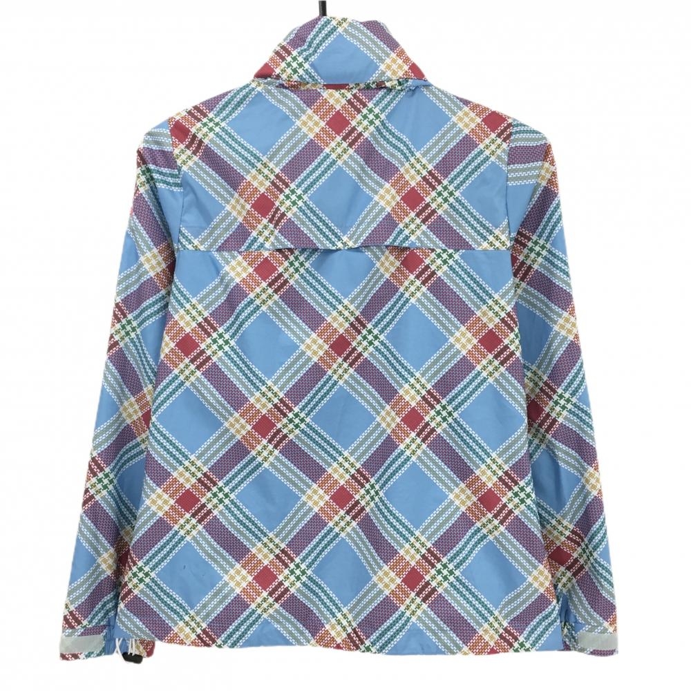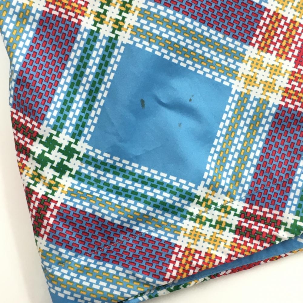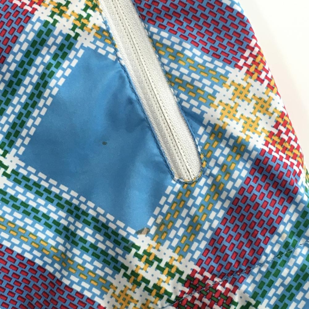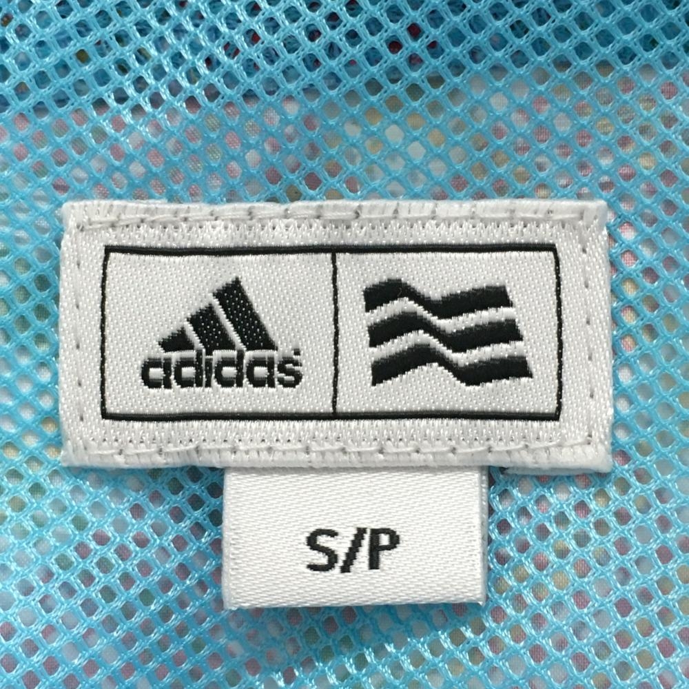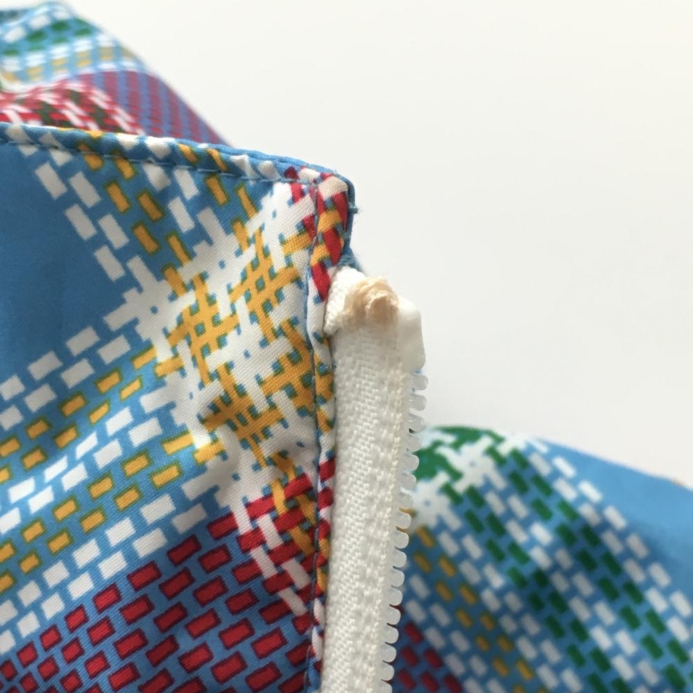 【美品】アディダス ジップパーカー ライトブルー×レッド チェック フード収納可 メッシュ裏地 レディース S/P ゴルフウェア adidas