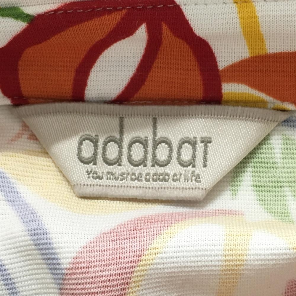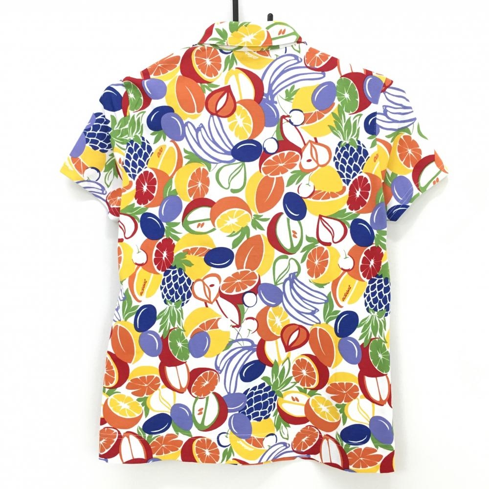 【超美品】アダバット 半袖ポロシャツ 白×マルチカラー フルーツ総柄 レディース 38(M) ゴルフウェア adabat