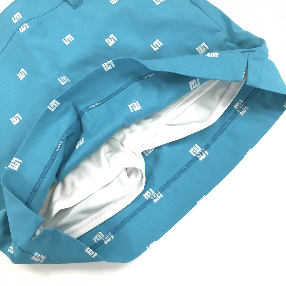 【超美品】ラウドマウス スカート ライトブルー×白 ロゴ刺しゅう総柄 内側インナーパンツ レディース L ゴルフウェア LOUDMOUTH