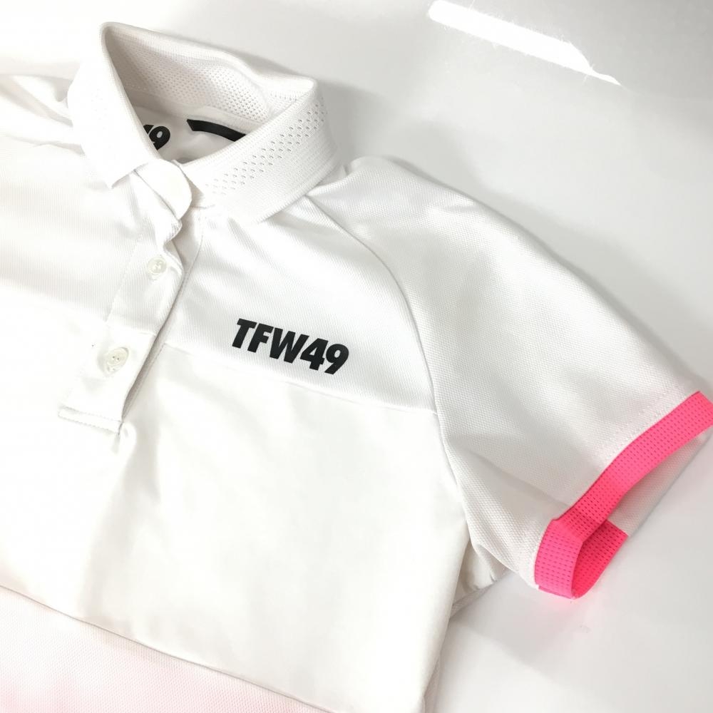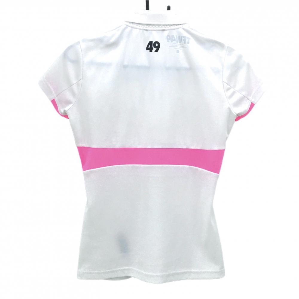 【美品】TFW49 半袖ポロシャツ 白×蛍光ピンク 襟一部メッシュ レディース M ゴルフウェア TFW49