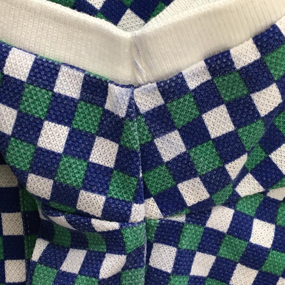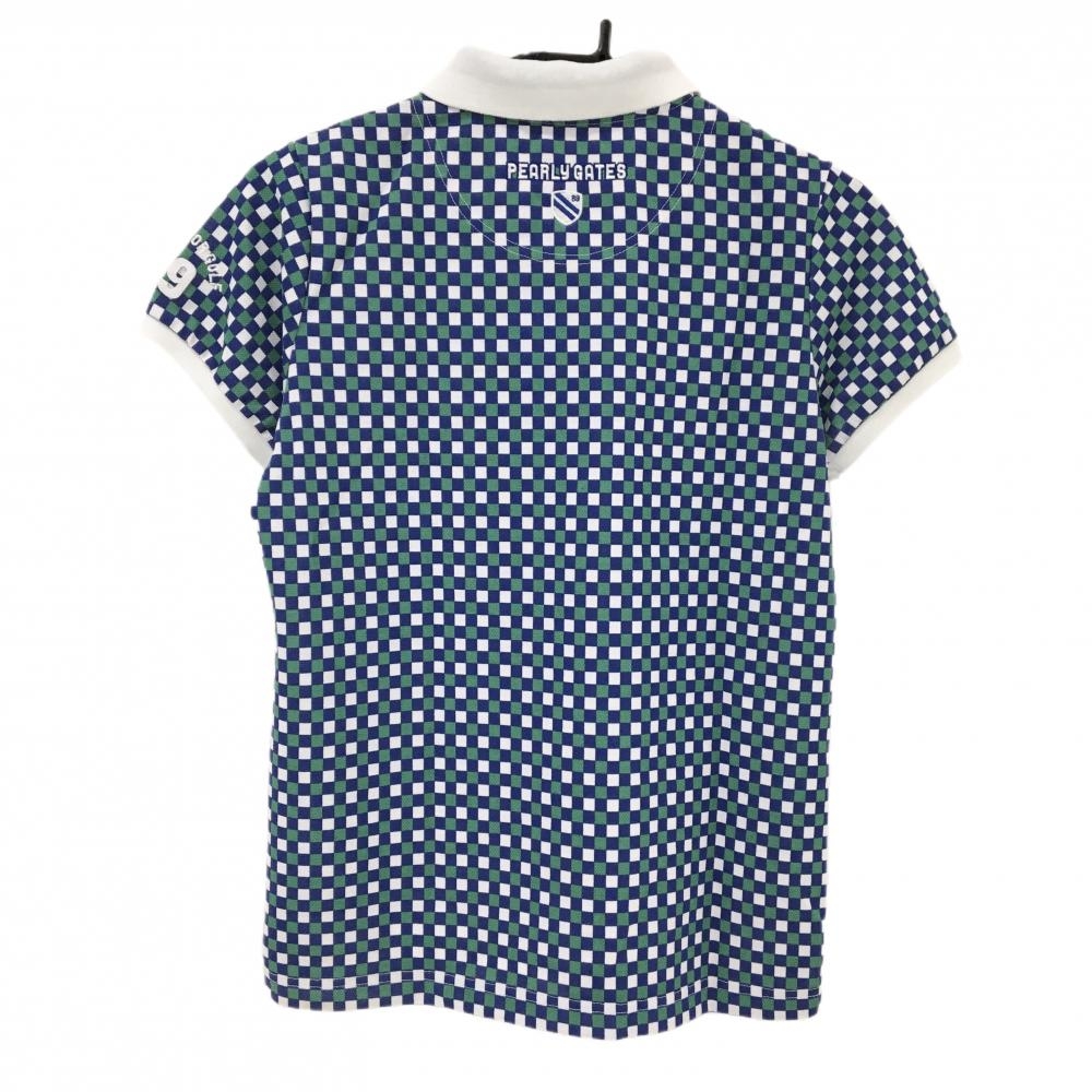 【美品】パーリーゲイツ 半袖ポロシャツ ブルー×グリーン×白 ブロックチェック レディース 1(M) ゴルフウェア PEARLY GATES