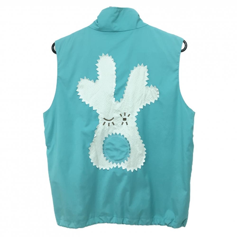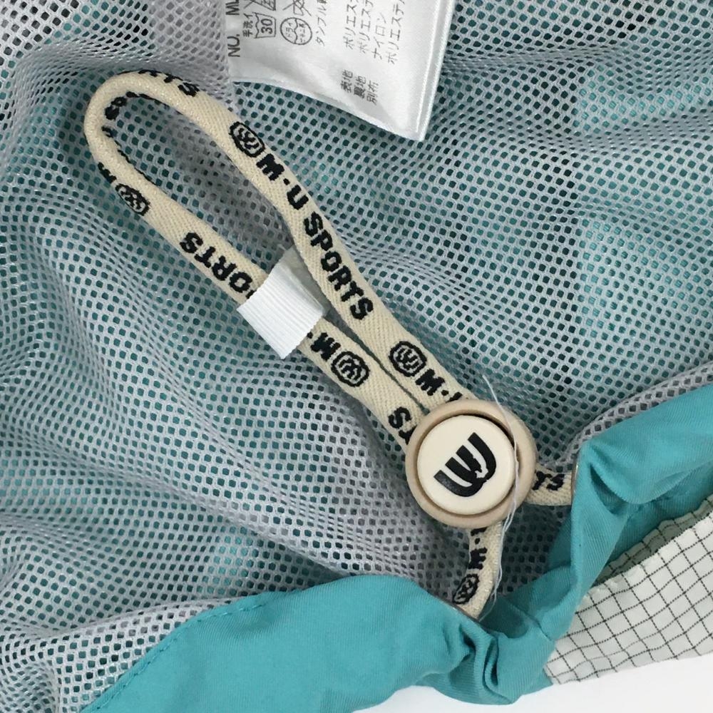 【美品】MUスポーツ アウターベスト ライトブルー系×白 犬 裾ドローコード レディース 42(L) ゴルフウェア M・U SPORTS