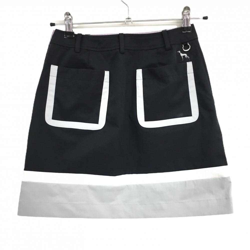 【超美品】アダバット スカート 黒×白×ライトグレー 裾ライン 後ろロゴ刺しゅう ストレッチ レディース 34(XS) ゴルフウェア adabat