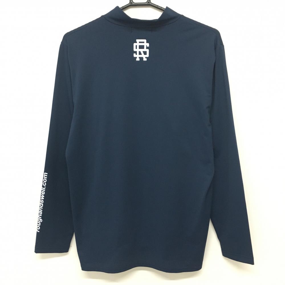 【美品】ラフアンドスウェル 長袖ハイネックシャツ ネイビー フロントロゴ メンズ M ゴルフウェア rough&swell
