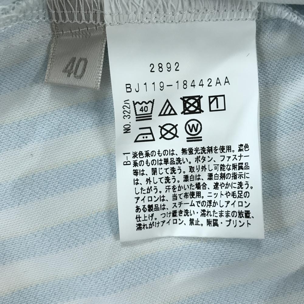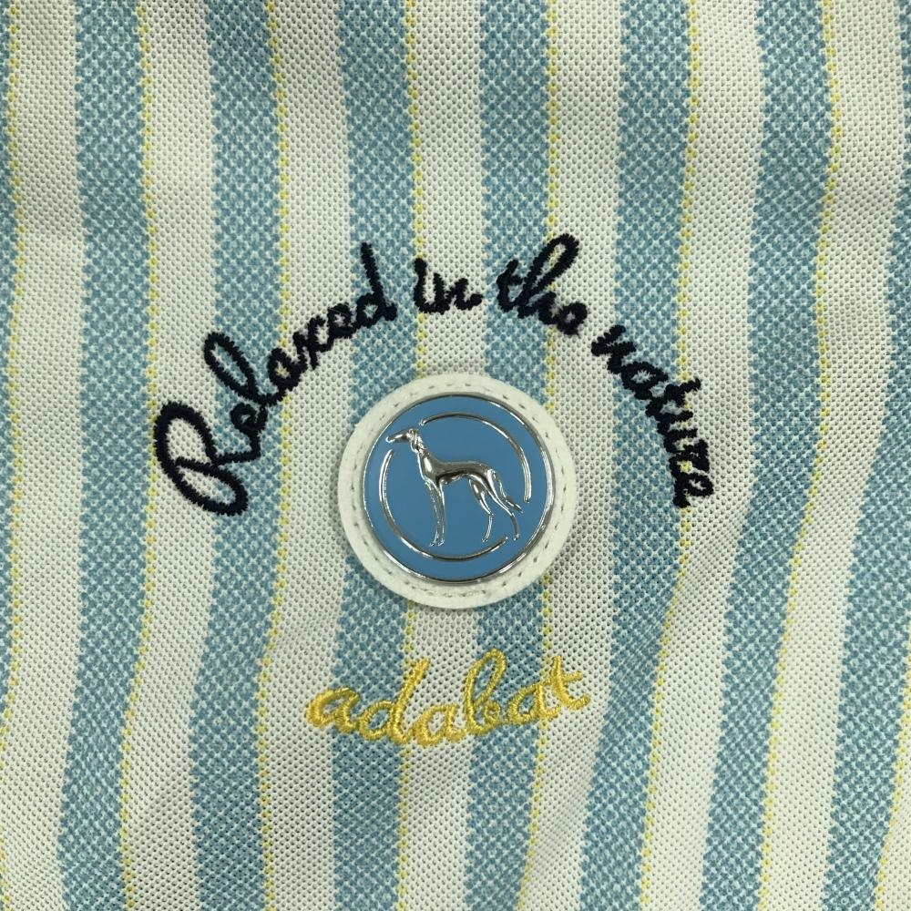 【超美品】アダバット 半袖ポロシャツ ライトブルー×白 ストライプ レディース 40(L) ゴルフウェア adabat