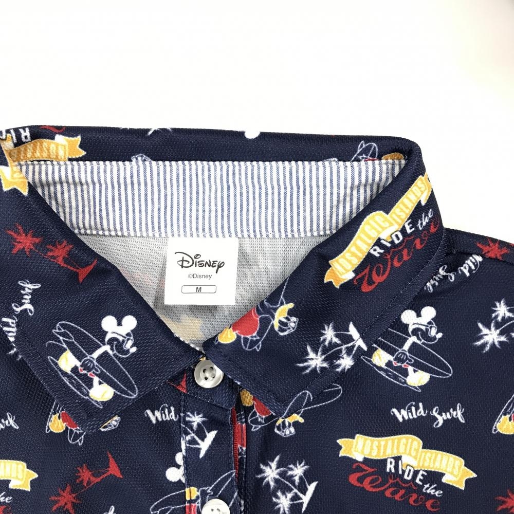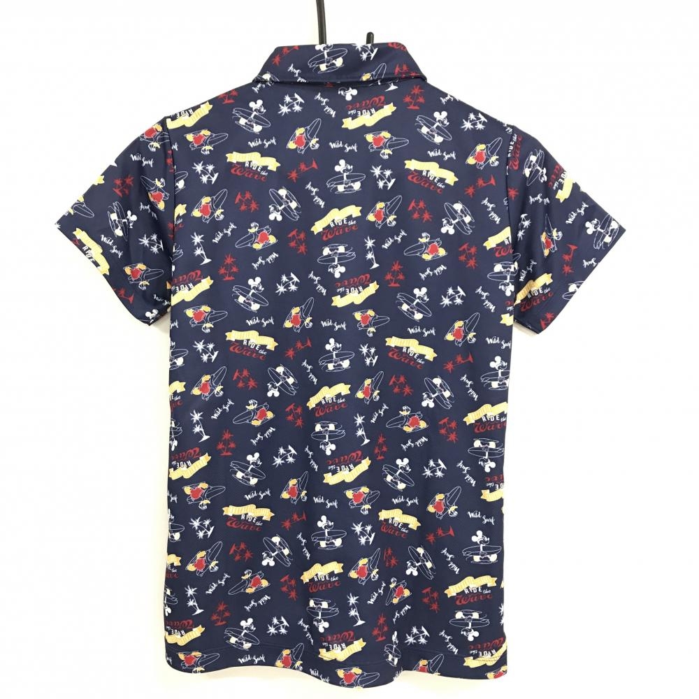 【超美品】ディズニー 半袖ポロシャツ ネイビー×レッド×イエロー 総柄 ミッキー ドナルド レディース M ゴルフウェア Disney