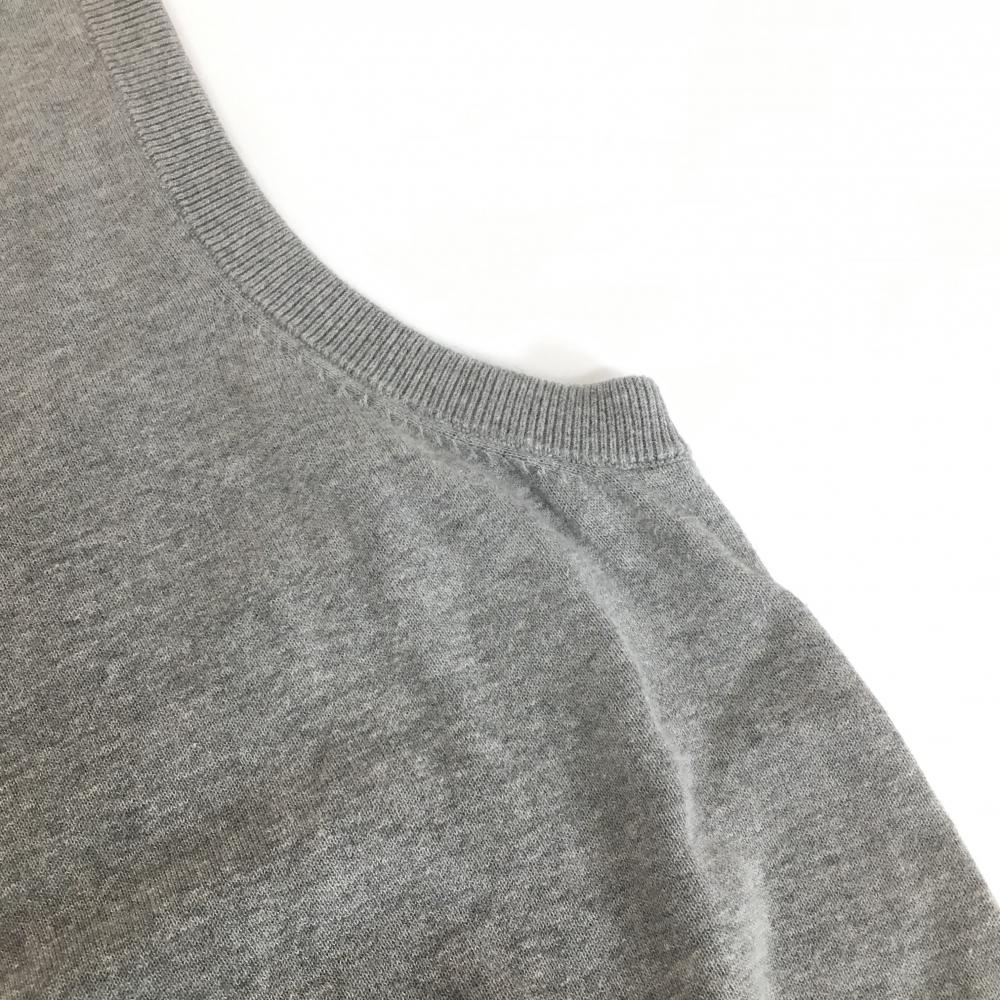 【美品】ラフアンドスウェル ニットベスト 杢グレー 胸ロゴ 綿100% Vネック メンズ L ゴルフウェア rough&swell