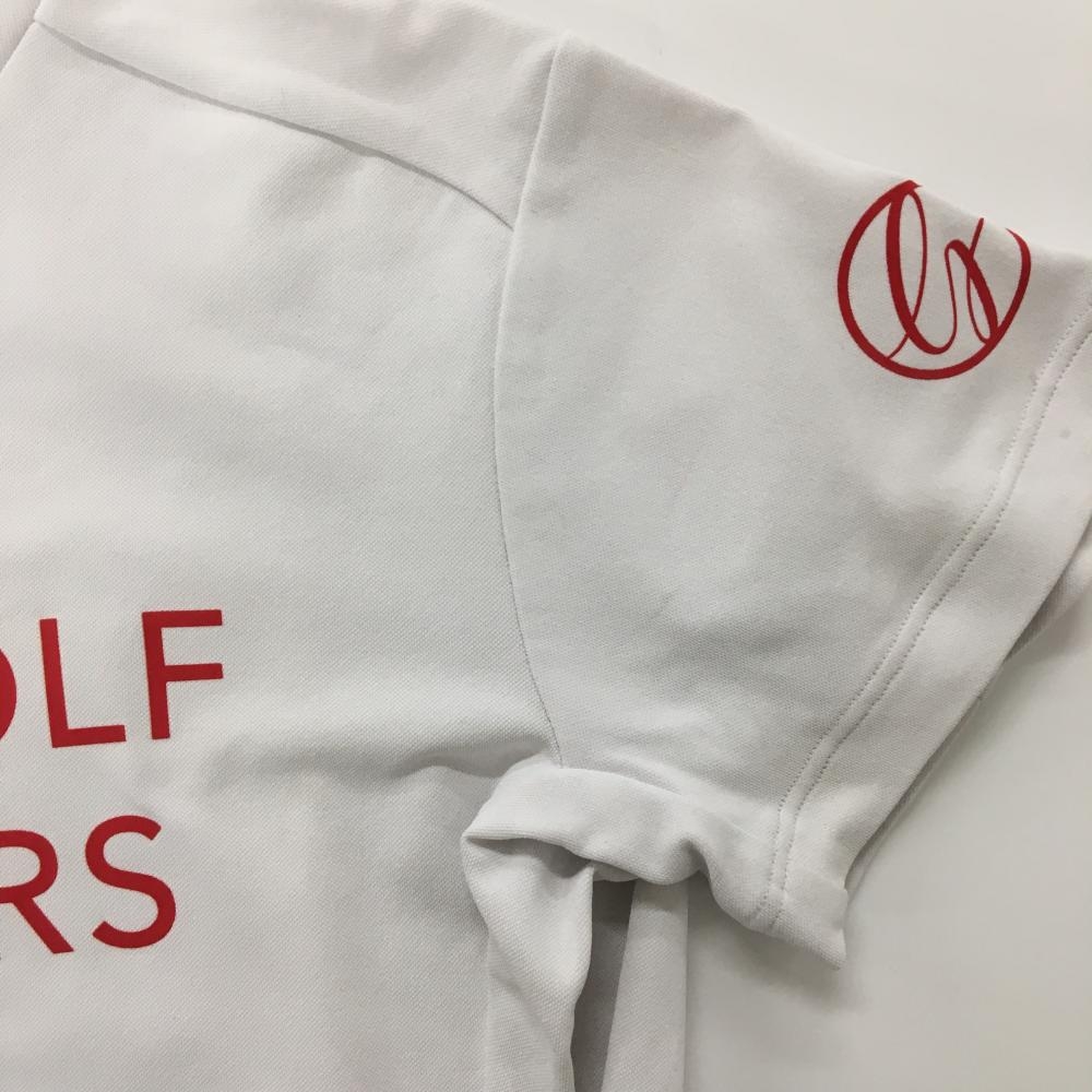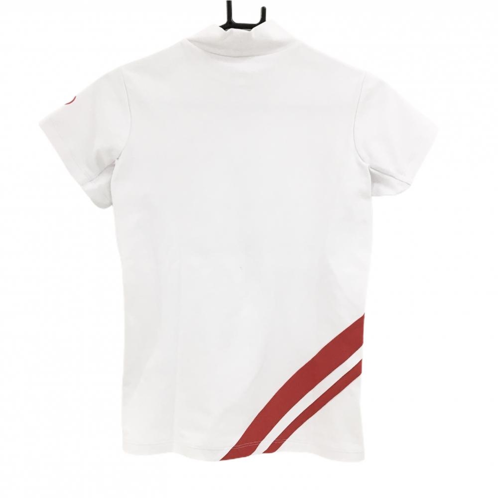 デサントゴルフ 半袖ハイネックシャツ 白×レッド フロントロゴプリント 中田英寿 レディース M ゴルフウェア DESCENTE