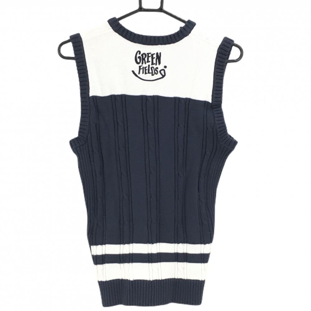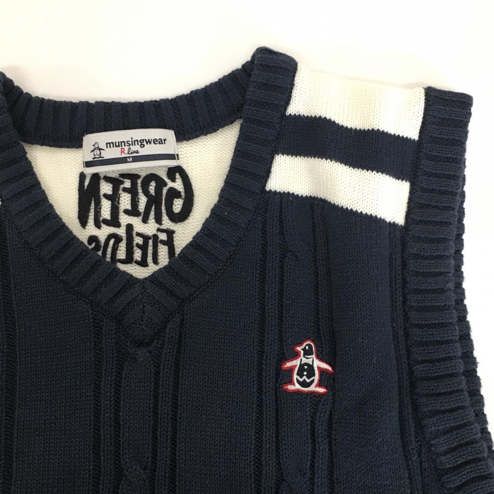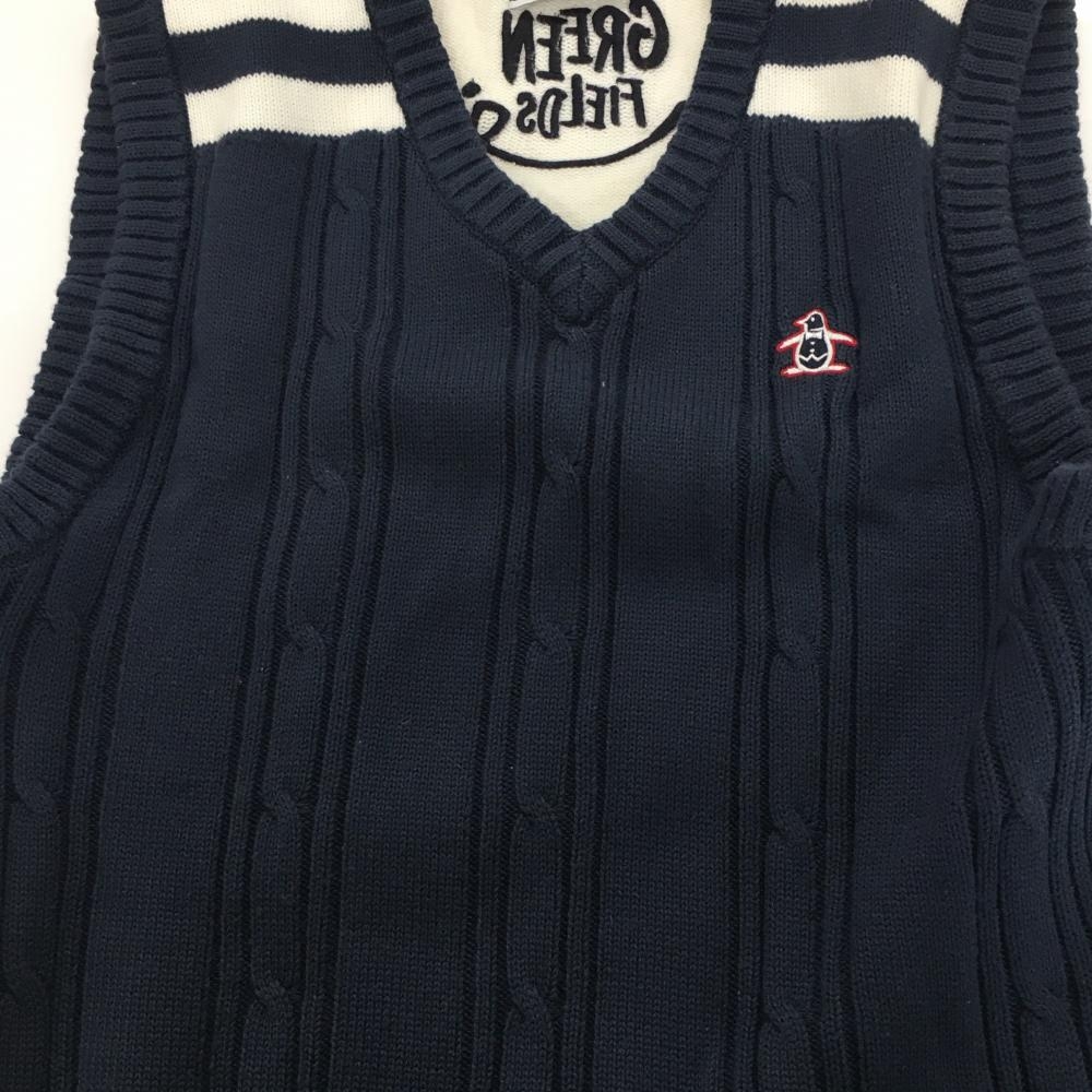 マンシングウェア ニットベスト ネイビー×白 ケーブル編み コットン混 メンズ M ゴルフウェア Munsingwear
