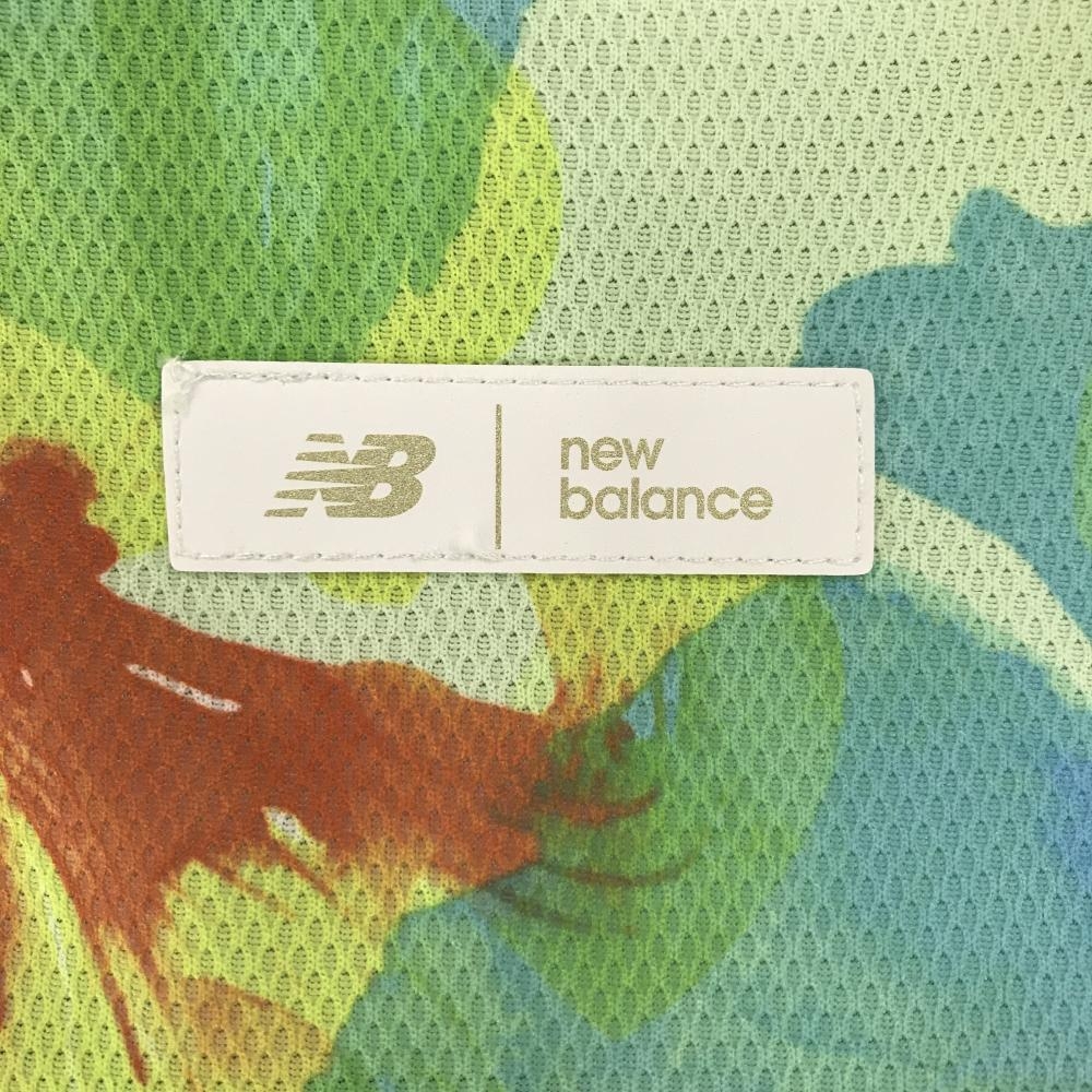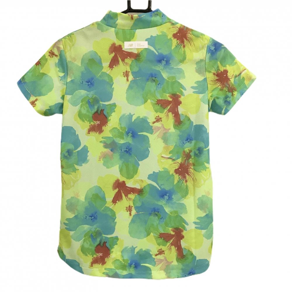 【超美品】ニューバランスゴルフ 半袖ハイネックシャツ イエロー系×ライトブルー 花柄風 レディース 0(S) ゴルフウェア New Balance