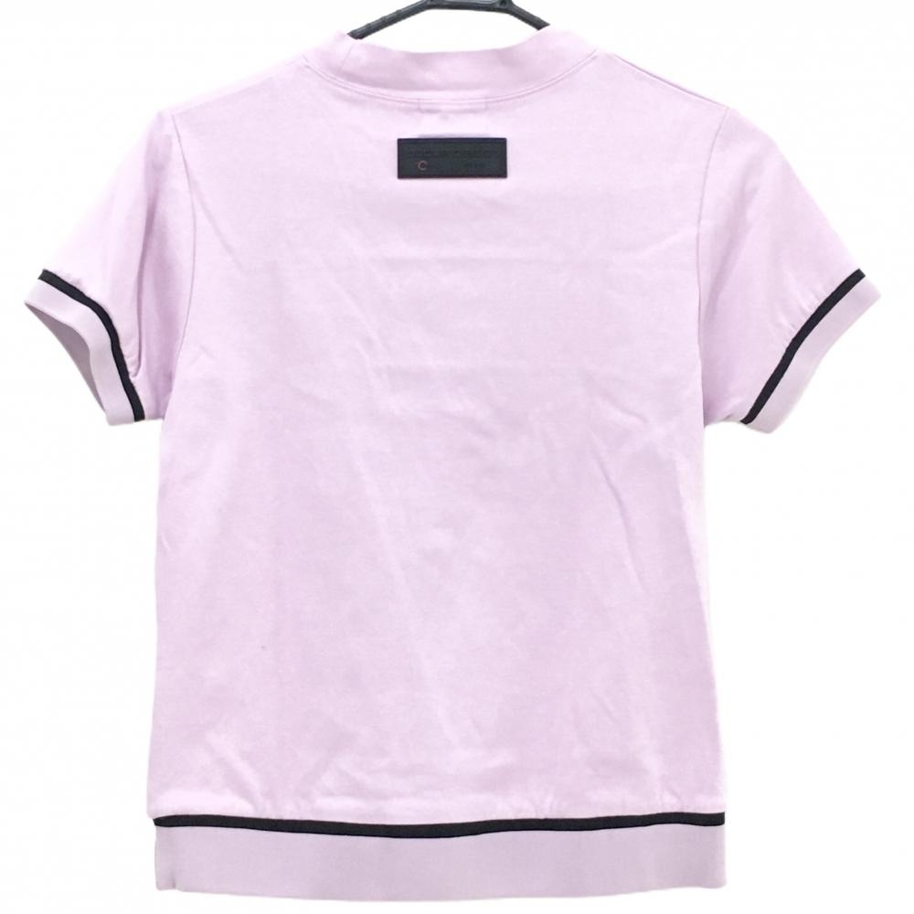 【美品】ドゥーカス Tシャツ ピンク系×黒 ロゴプリント 裾リブ レディース S ゴルフウェア 2024年モデル Docus