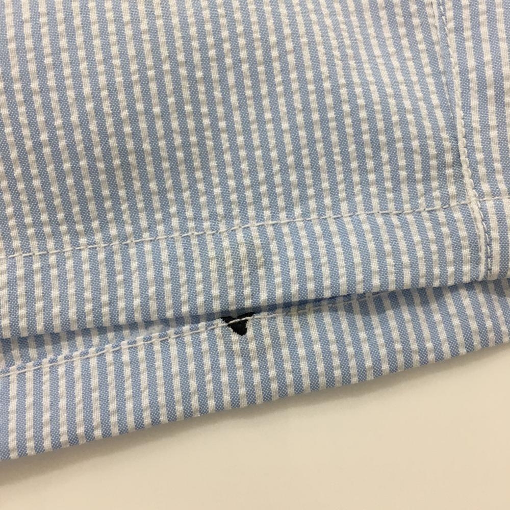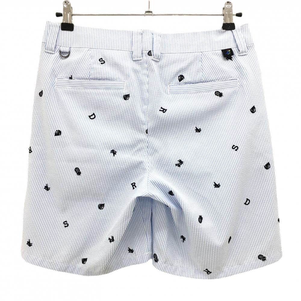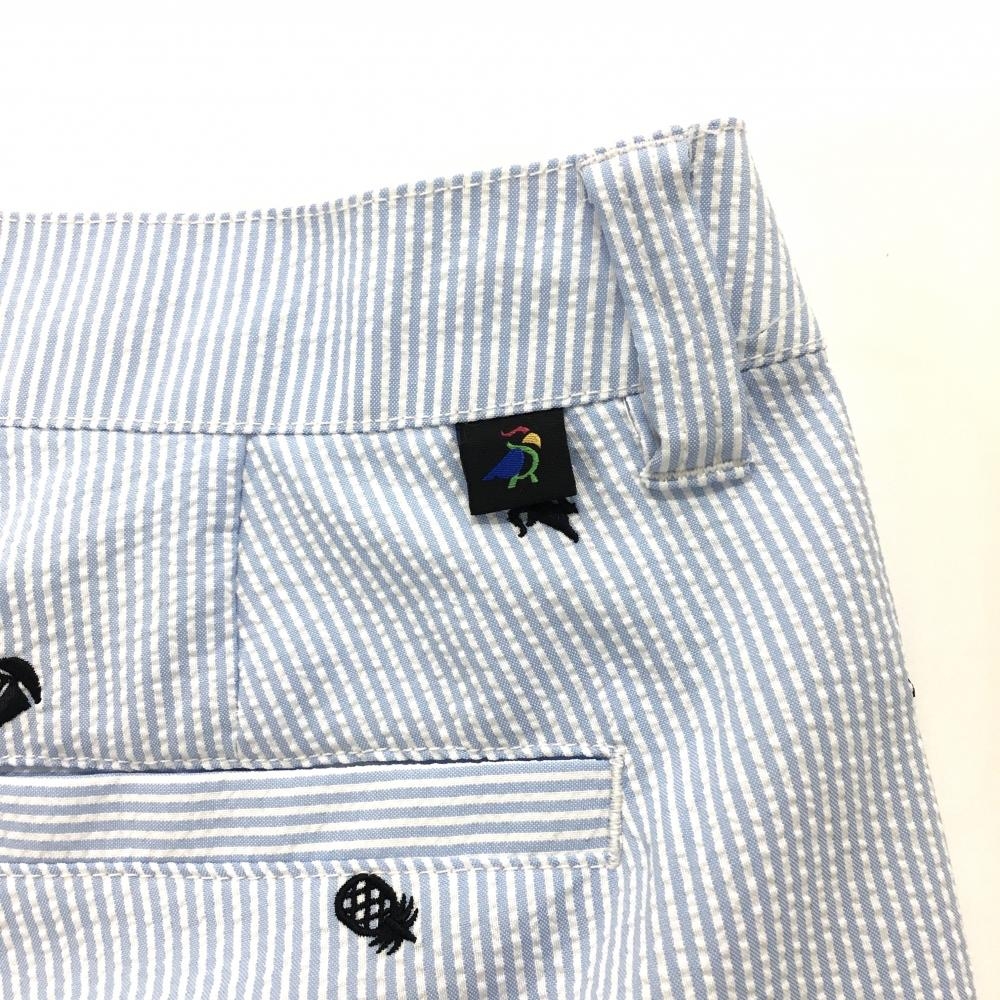 【超美品】パラディーゾ ハーフパンツ ライトブルー×白 ストライプ 刺しゅう総柄 サッカー生地 レディース L ゴルフウェア Paradiso
