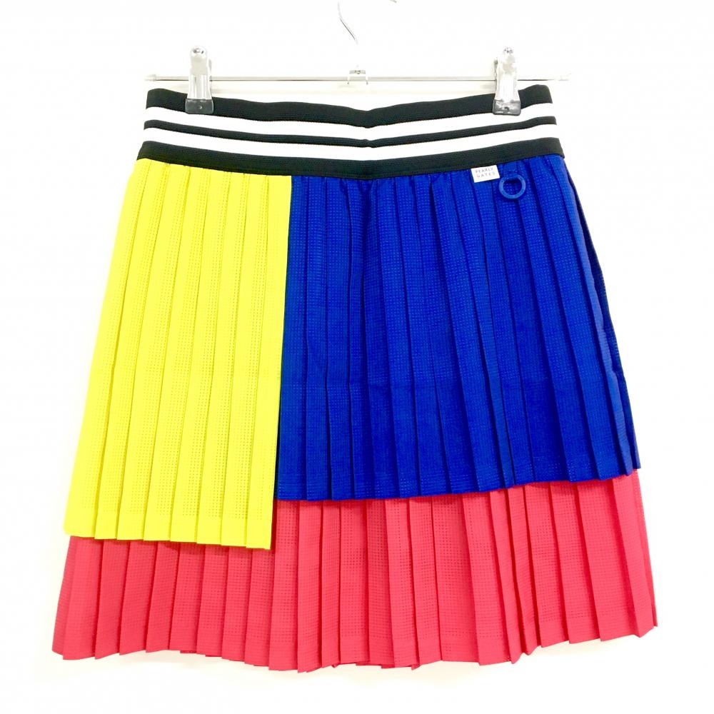 【新品】パーリーゲイツ スカート ネイビー×イエロー×レッド プリーツ メッシュ生地 レディース 0(S) ゴルフウェア PEARLY GATES