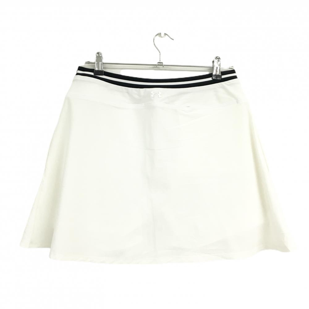 【美品】アンダーアーマー スカート 白×黒 ウエストゴム 内側インナーパンツ ストレッチ レディース M ゴルフウェア UNDER ARMOUR
