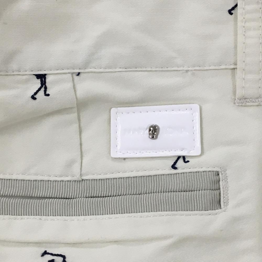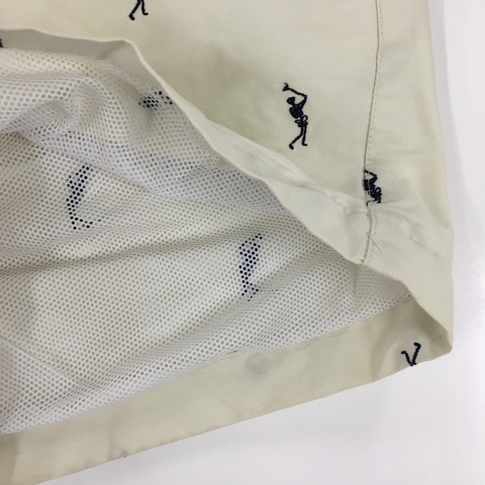 【美品】マークアンドロナ ショートパンツ アイボリー×ネイビー 刺しゅう総柄 裏地メッシュ レディース S ゴルフウェア MARK&LONA