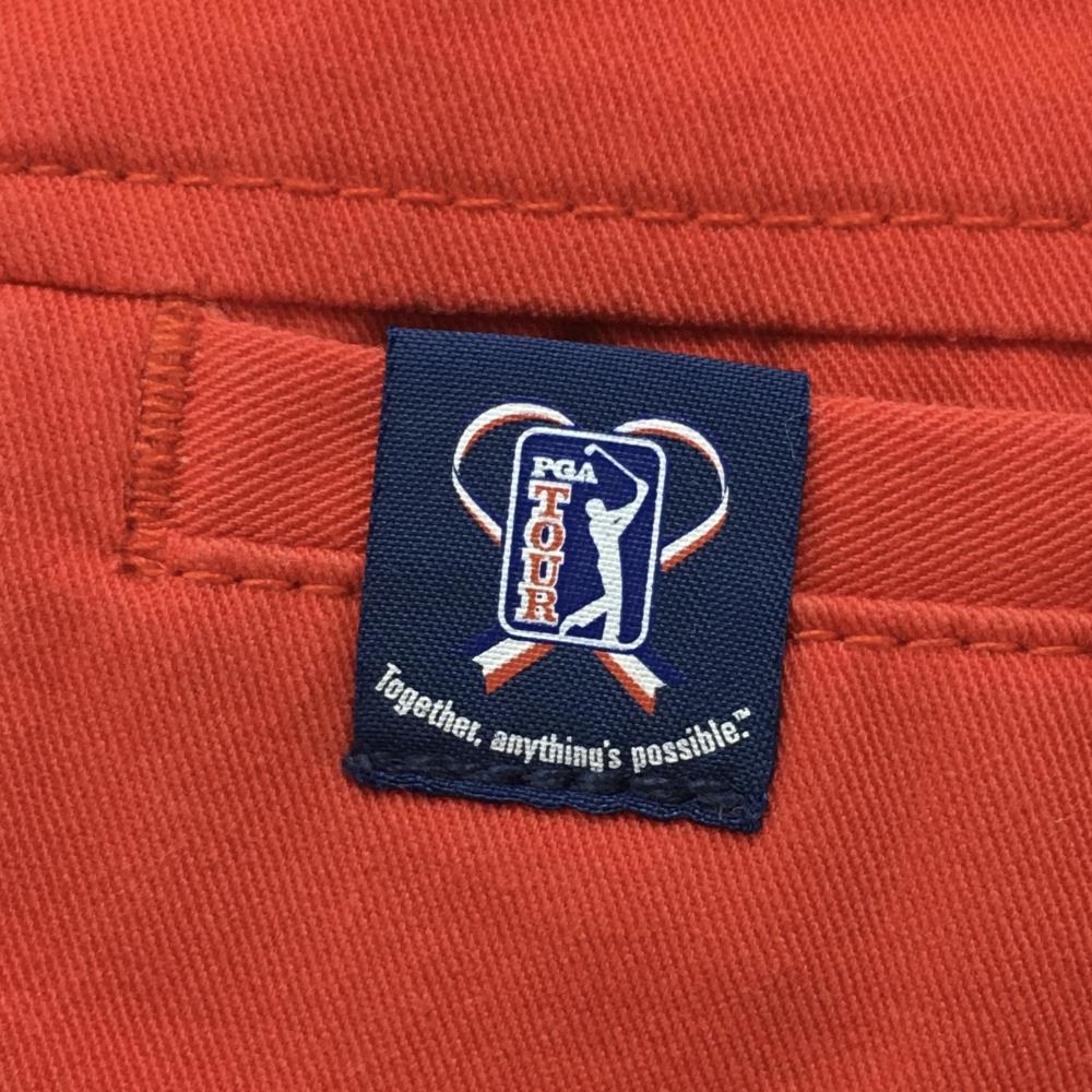 【美品】ピージーエーツアー パンツ オレンジレッド シンプル 無地 レディース L ゴルフウェア PGA TOUR