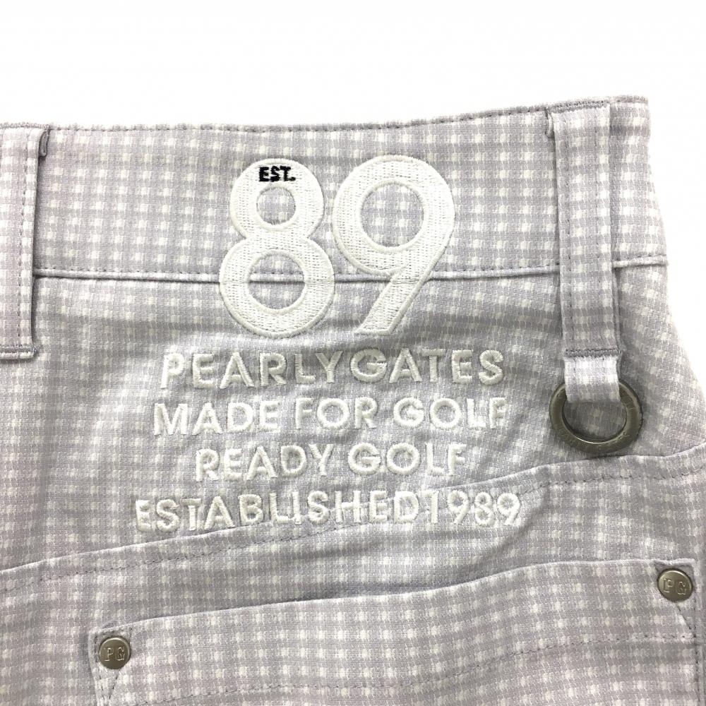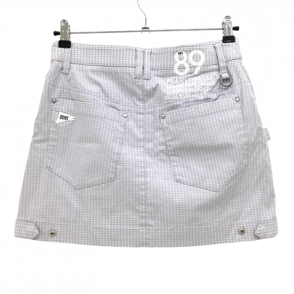 【美品】パーリーゲイツ スカート 白×ライトグレー系 ギンガムチェック ロゴ刺しゅう レディース 0(S) ゴルフウェア PEARLY GATES
