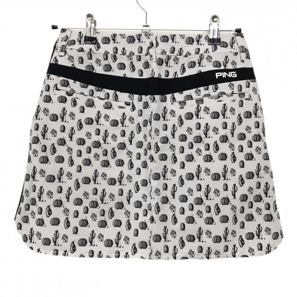 【美品】ピン スカート ライトグレー×黒 サボテン柄 薄手 レディース S ゴルフウェア PING