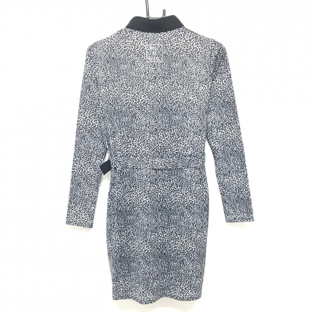 【新品】エフィカスブラン 長袖ポロワンピース 黒×白 総柄 裏起毛 共布ベルト・インナーパンツ付 レディース M ゴルフウェア efficace